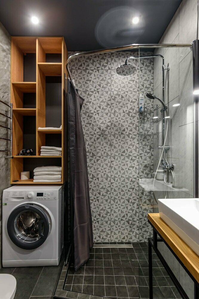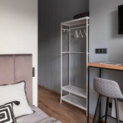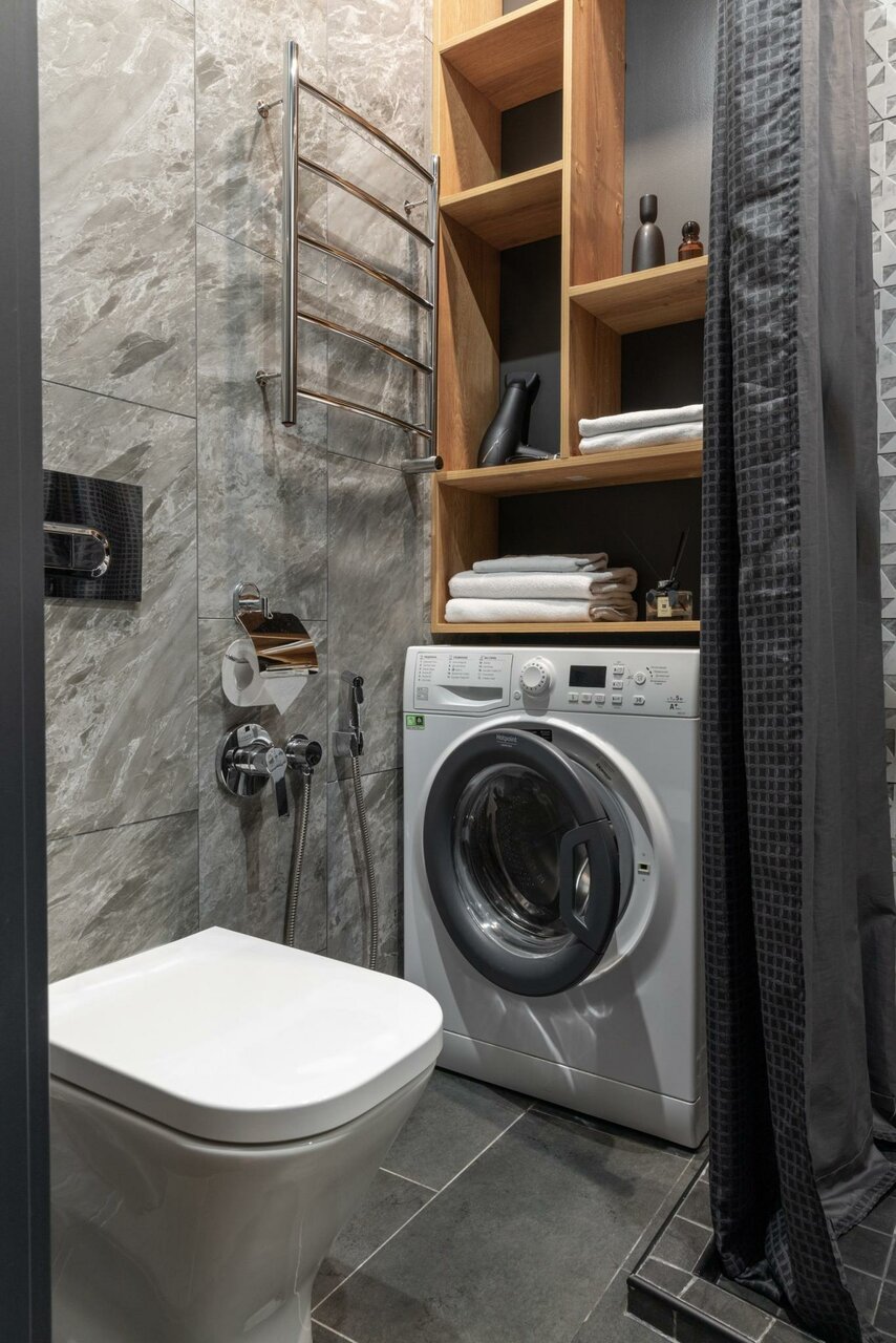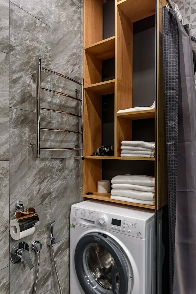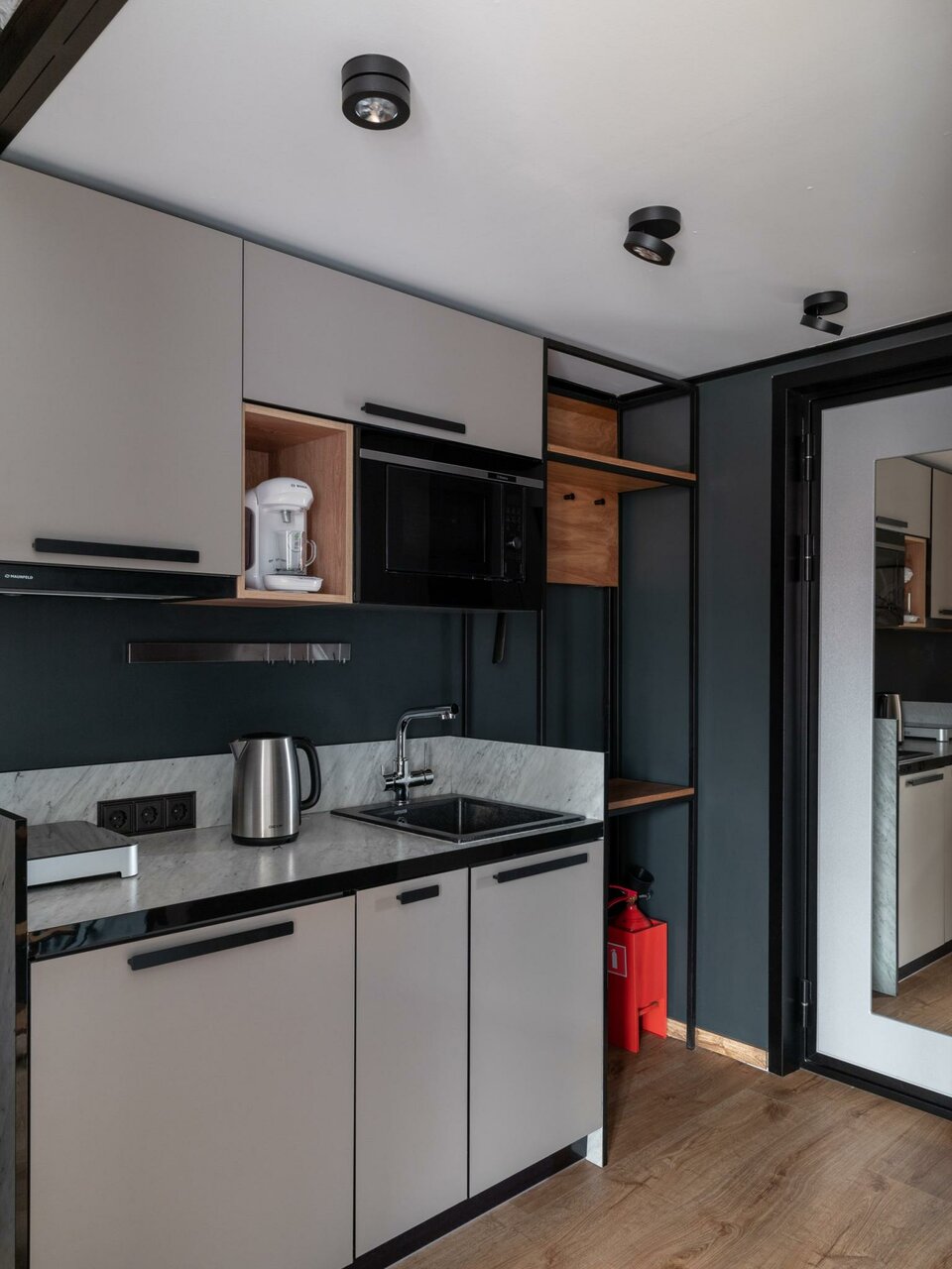 - Полная комплектация бытовой техникой (стиральная машина, кофемашина, чайник, холодильник).
