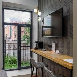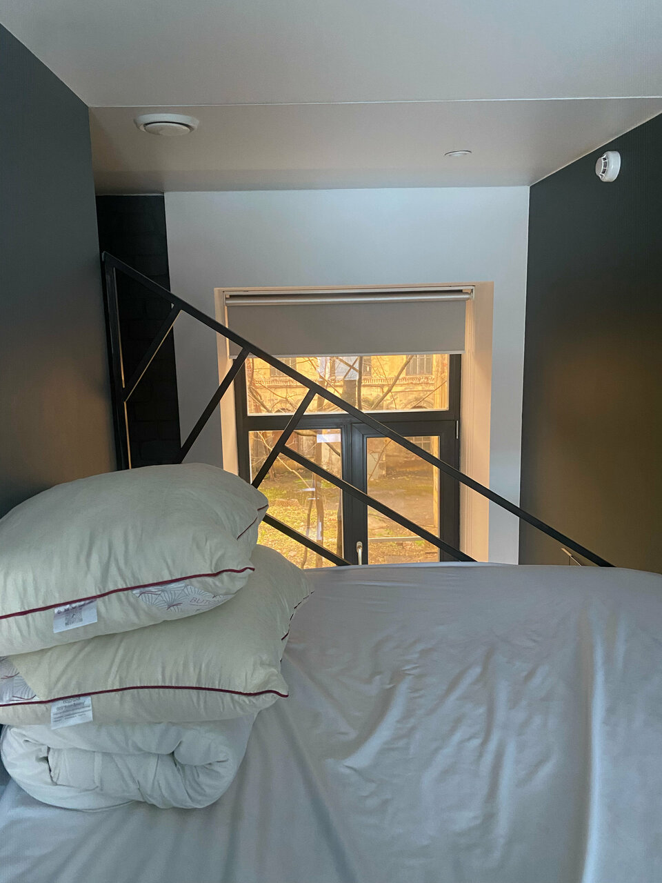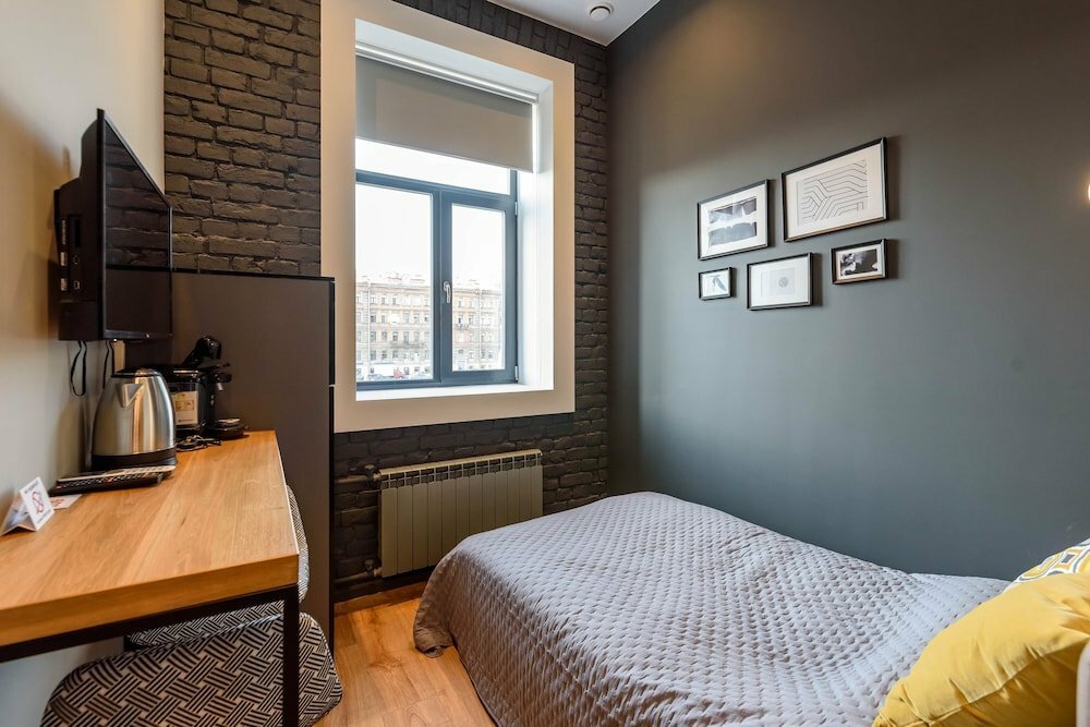 Нереально удачное место!!! Вид из окна, расположение, сервис — отменно! Иностранцы называют такое сочетание good value, а я бы сказала, что вообще идеальное сочетание. Окно выходит на набережную Фонтанки, на окнах сетки от насекомых, хорошая вентиляция в ванной, количество розеток — проектировал гений!