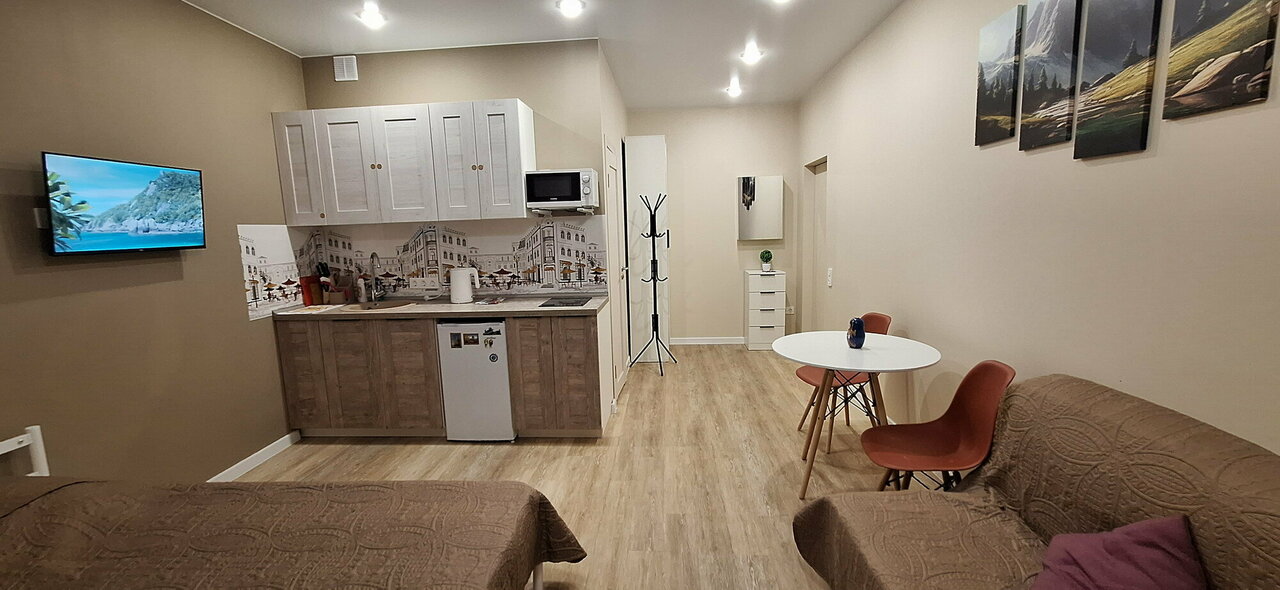 Отличная уютная студия, чистая и опрятная, ремонт новый. Очень приятные и доброжелательные хозяева. Удобное расположение, рядом метро, магазины, кафе. До центра можно дойти пешком. Буду в будущем здесь останавливаться, все очень понравилось