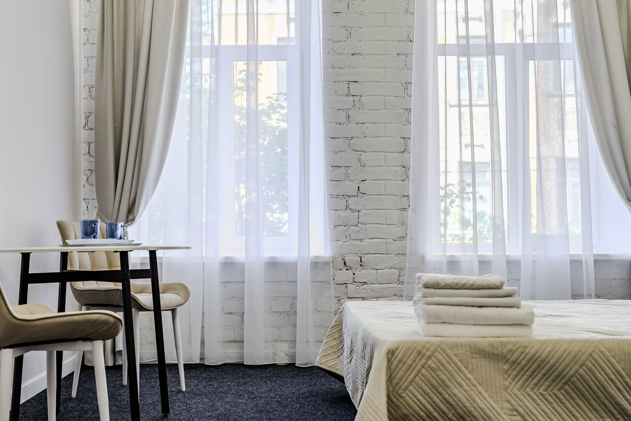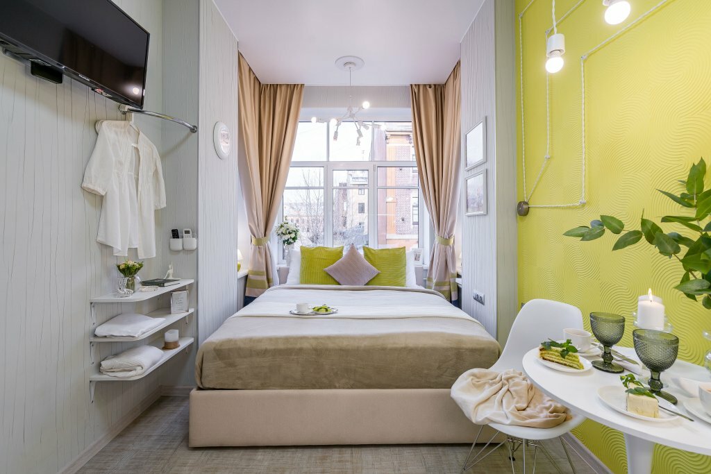Отличные аппартаменты. Проживала в одноместном номере (комната №2). Обязательно вернусь, так как: 1. Удобное расположение, 7 минут до Московского вокзала и метро Площадь восстания. 2. Рядом есть вкусные заведения, необходимые магазины. 3. Высокие потолки, новый стильный ремонт, идеальная чистота и отсутствие запаха плесени (что часто имеет место быть в квартирах Питера). 4. Светлая комната, достаточно тихая улица, не смотря на то, что это — исторический центр. 5. В номере есть все необходимое для проживания (чайник, приборы, холодильник, посуда). 6. Если вы приехали на долгий срок, есть стиральная и сушильная машины. 7. Теплый пол в ванной комнате, можно дополнительно взять обогреватель, если очень замерзли после прогулки.