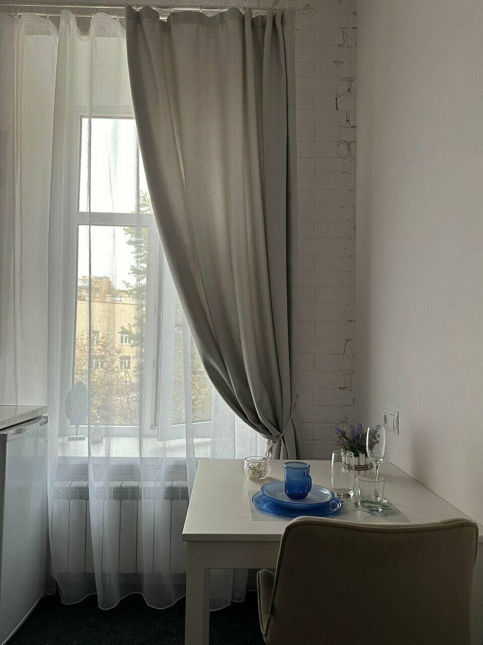 Проживала одна, сначала забронировала на неделю, потом еще на одну, потому что поняла, что лучше ничего не найти. Ремонт новый, куча магазинов и метро в шаговой доступности, при этом цена очень приятная. Очень тихо, слышно только шаги людей в коридоре и стиральную машинку. А еще есть сушильная машина, это просто нечто! Окна выходили на проезжую часть, но машины там очень редко ездили, при этом вид красивый. Центр, но нет туристов, очень советую тем, кто не любит шум и столпотворения. Для комфортного жилья есть абсолютно все, удобный стол для учебы/работы, красивый душ с теплыми полами, приятный ковролин, все детали интерьера радуют глаз и дают чувство спокойствия. Только администратор показалась не очень доброжелательной. Также без обогревателя довольно холодно, а отопление включили очень поздно, где-то 4-5 ноября, когда на улице было +3