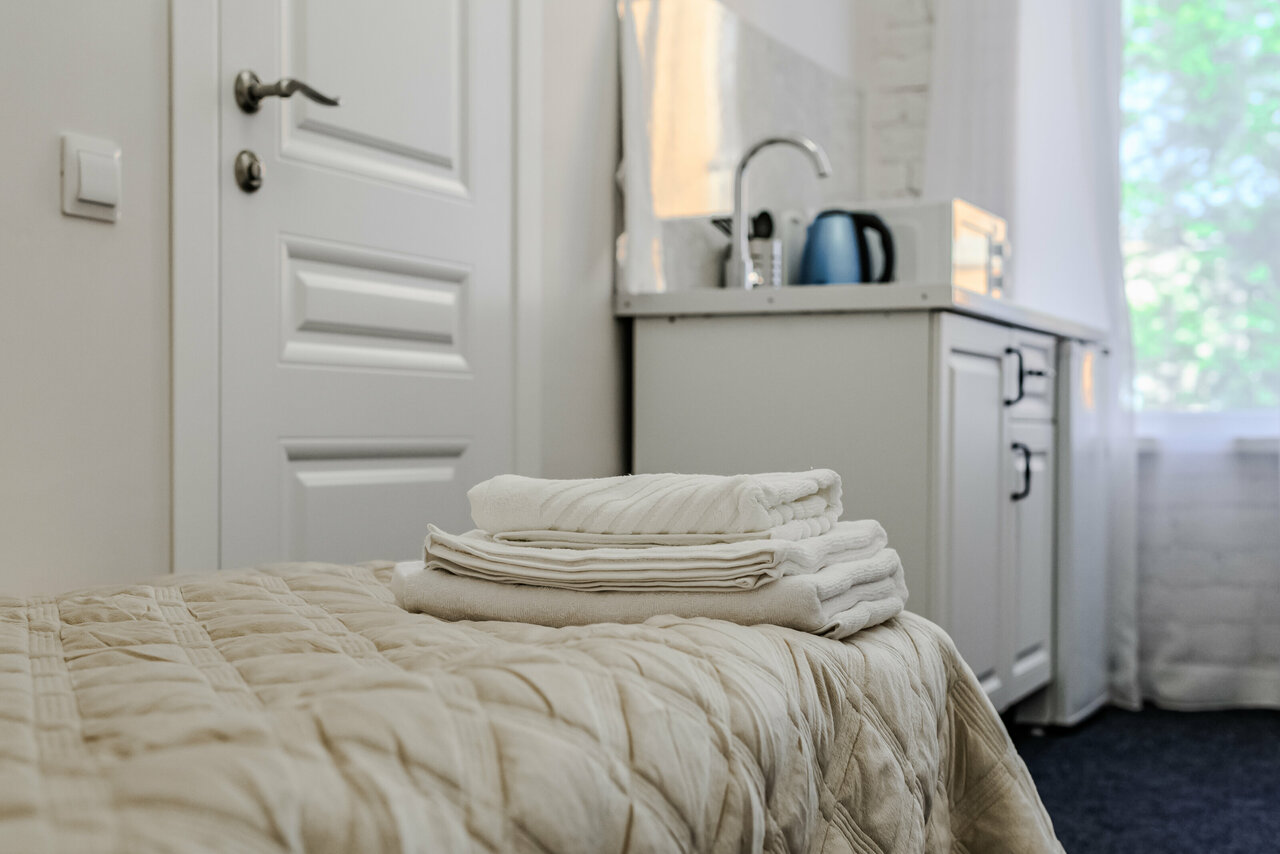 Отдыхали в новогодние праздники. Отличный номер, чистый, светлый, в точности как на фото! есть все необходимое для проживания, и что особенно порадовало очень удобная кровать, после многочасовых прогулок по городу, просто необходима. Спасибо вам большое, обязательно вернёмся к вам снова