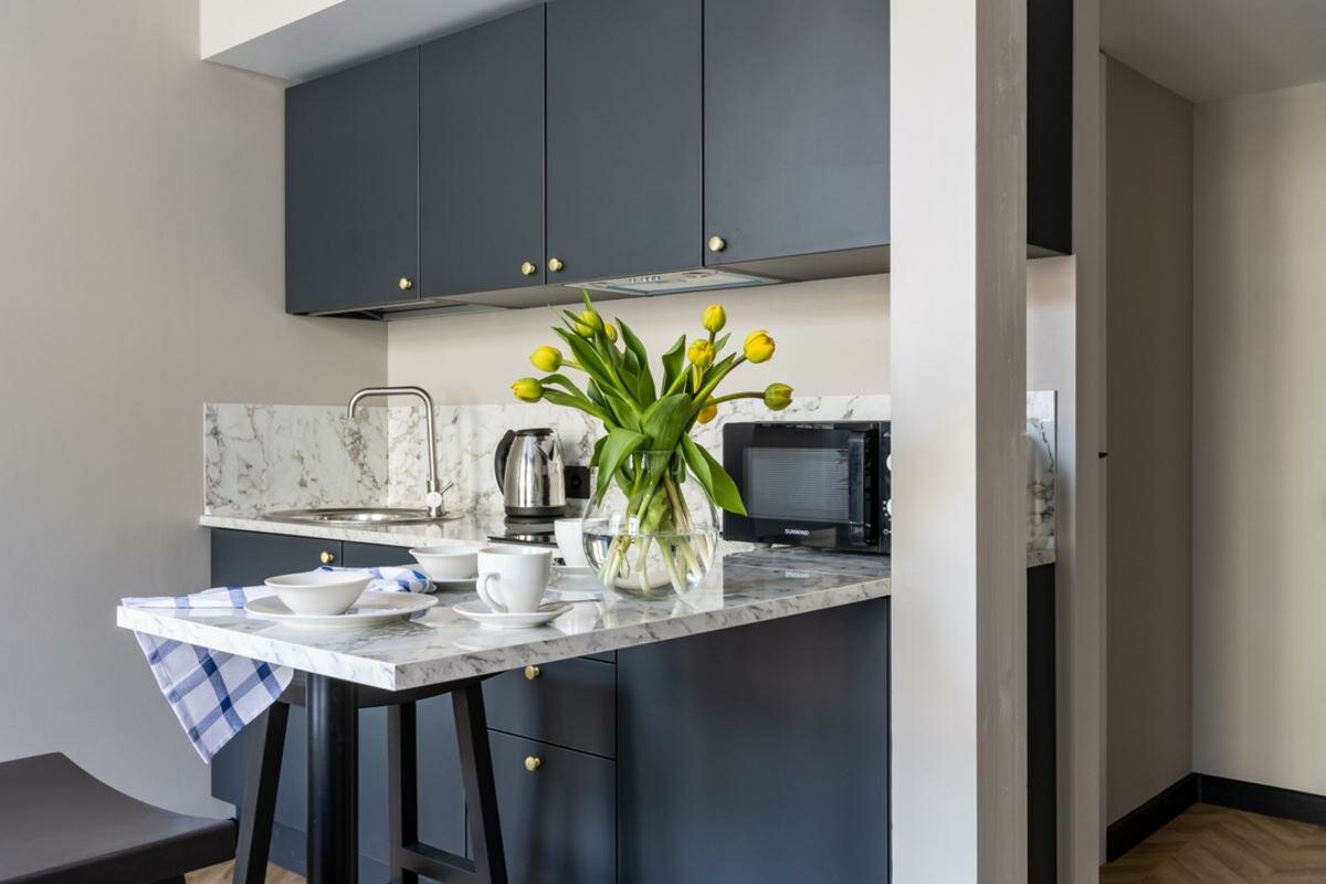 Площадь номера - 16 м.кв. В номере: Двуспальная кровать, Диван, Рабочий стол, Шкаф или гардероб, Вешалка для одежды, ЖК-телевизор, Мини-кухня, Кухонные принадлежности, Холодильник, Электрический чайник, Микроволновая печь, Электрическая варочная п...