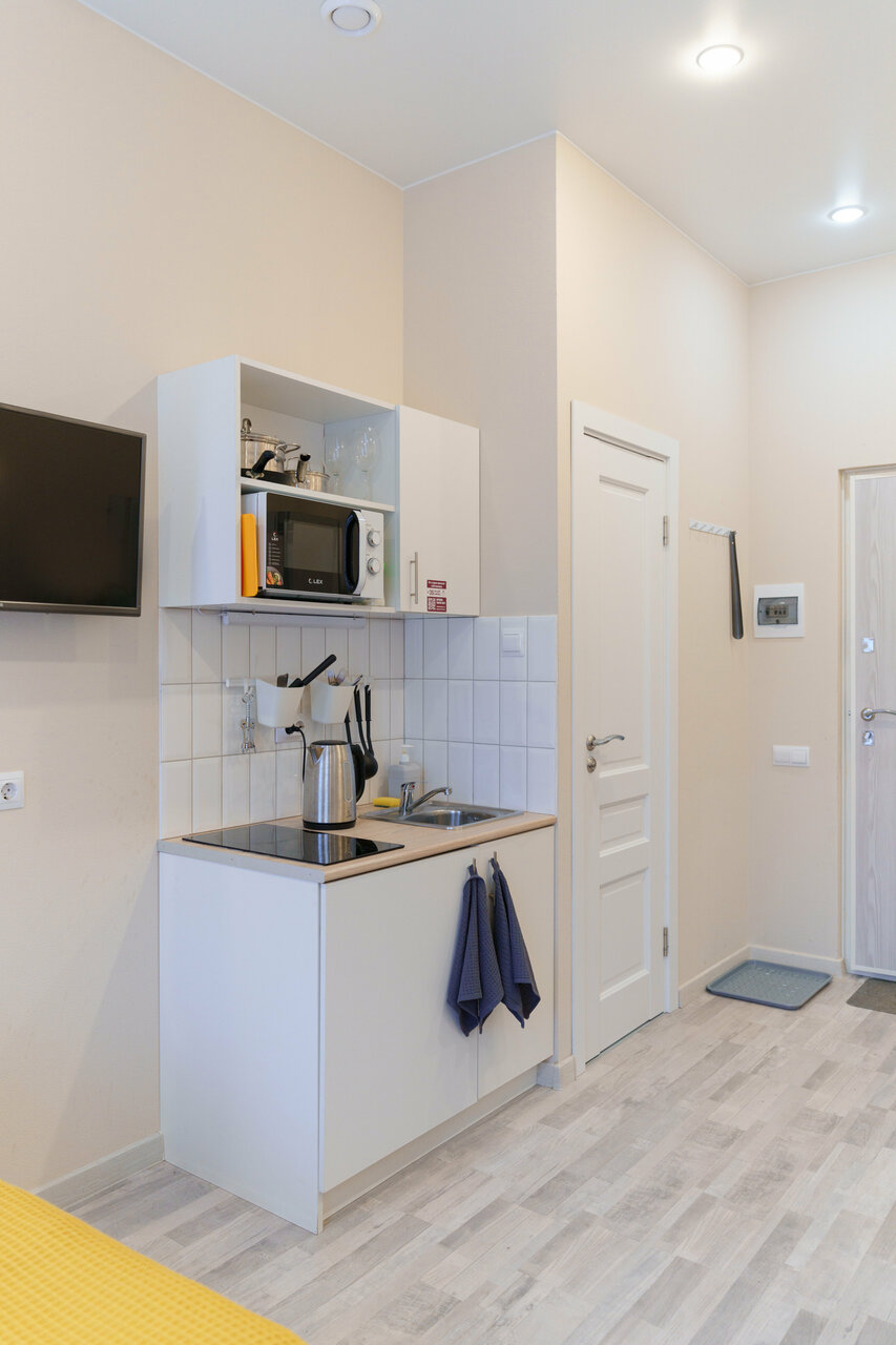 Отличные апартаменты, свежий ремонт, есть всё необходимое. Расположение хорошее- такси до Невского проспекта будет стоить недорого, а при желании можно и пешком дойти. Хозяин доброжелательный, позволил нам выехать немного позже. Нужно иметь в виду, что постоянного дежурства на ресепшене — нет, поэтому время заселения необходимо согласовать заранее- вход в отель осуществляется по чип-ключу. При заселении, первым делом, настройте температуру на бойлере(у меня стояла минимальная)- чтобы потом не ждать, когда захочется принять душ. В целом, понравилось- рекомендую.