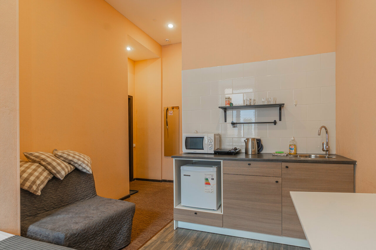 - Наличие кухни и необходимой техники в номере.