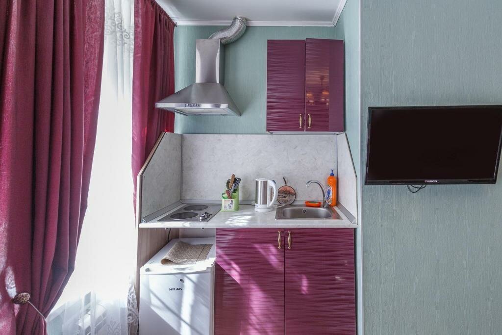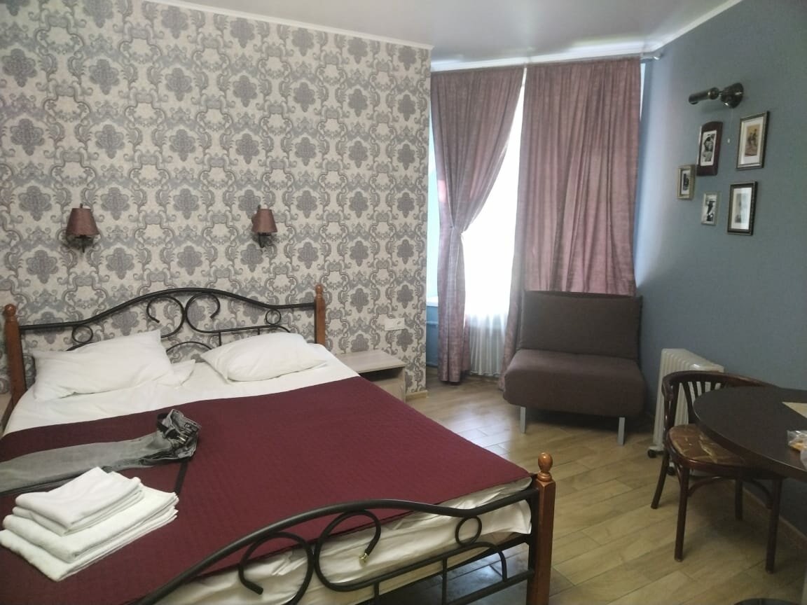Провели 6 ночей в этом отельчеке семьёй из 3х человек. Наш номер был с отдельным входом с улицы (это +). В номере все было в стиле ’12 стельев’. Заселение дистанционное. Чайник, микроволновка, фен работали. В ванной комнате всё работало хорошо, гель, шампунь, вода горячая и холодная были в достатке, что нельзя сказать о туалетной бумаге (надо подкупать). На мини-кухне не готовили, только разогревали. Советы: внимательно проверяйте высталяемый счёт после заселения перед оплатой, бывают ошибки; бельё после прачечной не проверяют на целостность (замена порванной наволочки не была поведена). Итог: номера на первом этаже жилого дома (в глубине квартала) рядом арка между домами, не шумно, жильё эконом класса.