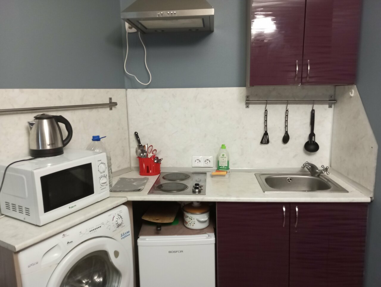 Выбрала это место по картинкам и в принципе не ошиблась.Очень атмосферное место. Из плюсов:1.красиво оформленные номера,где есть абсолютно все: плита,стиральная машина,утюг,чайник,вентилятор,сковороды и даже сахар с печенюшками. 2.каждый день тихо и незаметно убирают и наводят красоту. 3.удобно заходить и выходить когда хочется все тихо и комфортно.никаких посторонних,никаких пьянок и гулянок. 4.владелец на связи. 5.рядом есть магазин с едой. Мааленький минус за то,что до станции метро идти минут 7-10. Мы жили в комнате с 2 отдельностоящими кроватями ,оформленном в желтом цвете.Обязательно вернусь сюда.Очень понравилось.