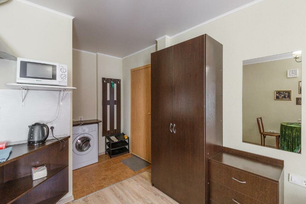 Отличные апартаменты. Есть буквально всё — стиральная машинка, утюг, фен, обогреватель, сейф, микроволновка, плита, посуда… Мебель деревянная, площадь жилой зоны достаточная. Мебели в меру. Есть шампунь, гель, средства для мытья посуды. Бесконтактный заезд. Окна выходят в тихий двор. Ремонт относительно свежий, матрасы удобные.