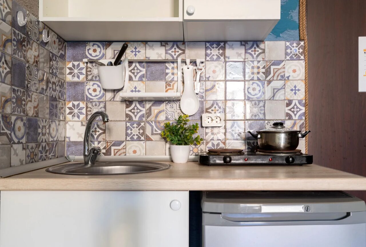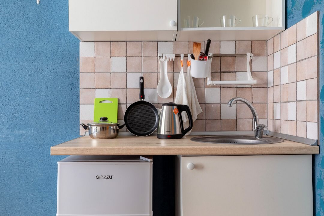 Компактные апартаменты площадью 15 кв.м, с двумя односпальными кроватями и собственной мини-кухней.Кухонная зона оборудована индукционной плитой, холодильником, микроволновой печью, чайником и посудой.В общем доступе: два санузла с душем, стир...