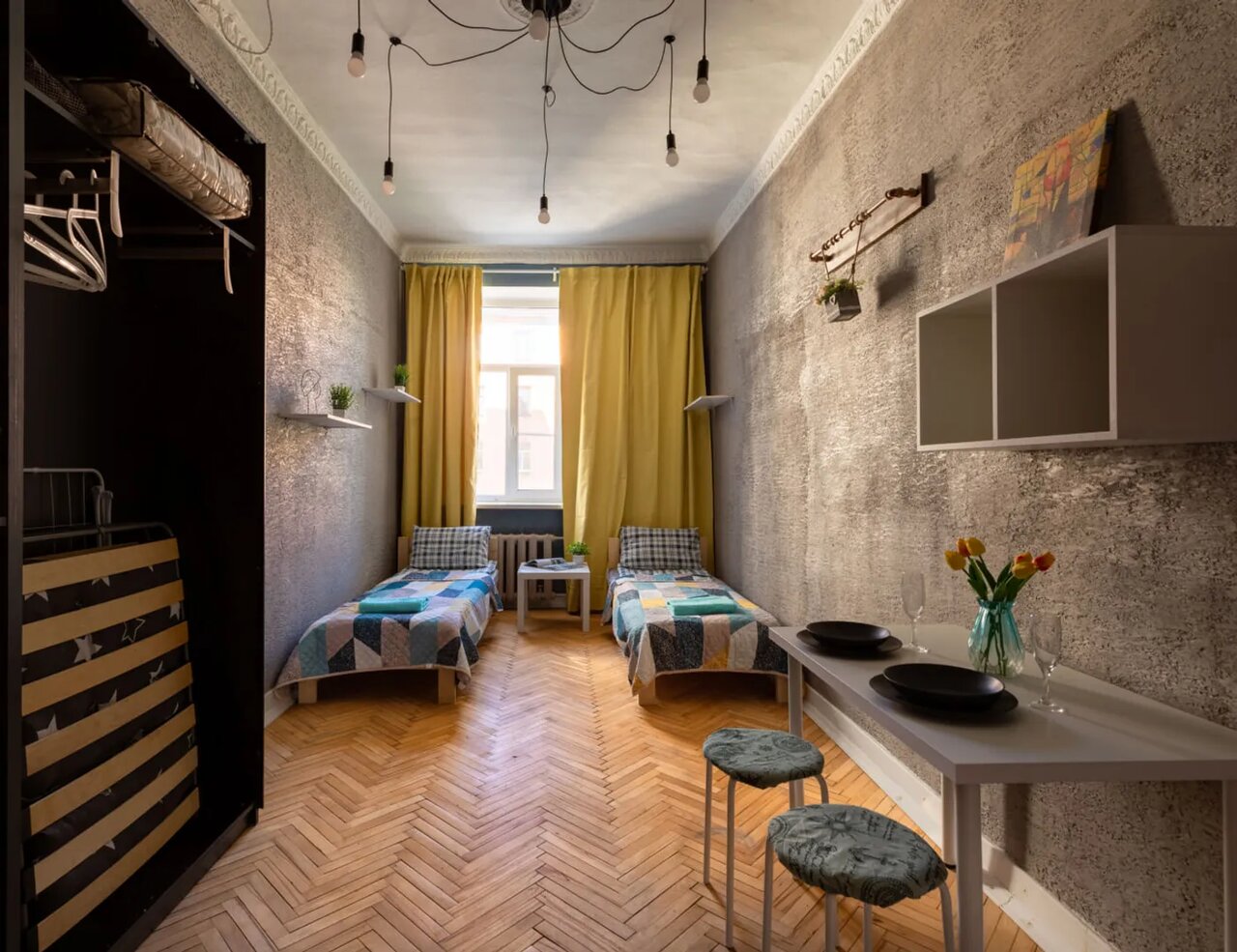 Трехместные апартаменты М5 (на 5-ой Красноармейской улице, 7)Компактные и уютные апартаменты с одной двуспальной кроватью или двумя односпальными кроватями расположены на 3 этаже с хорошим видом из окна.Также данные апартаменты имеют возможност...