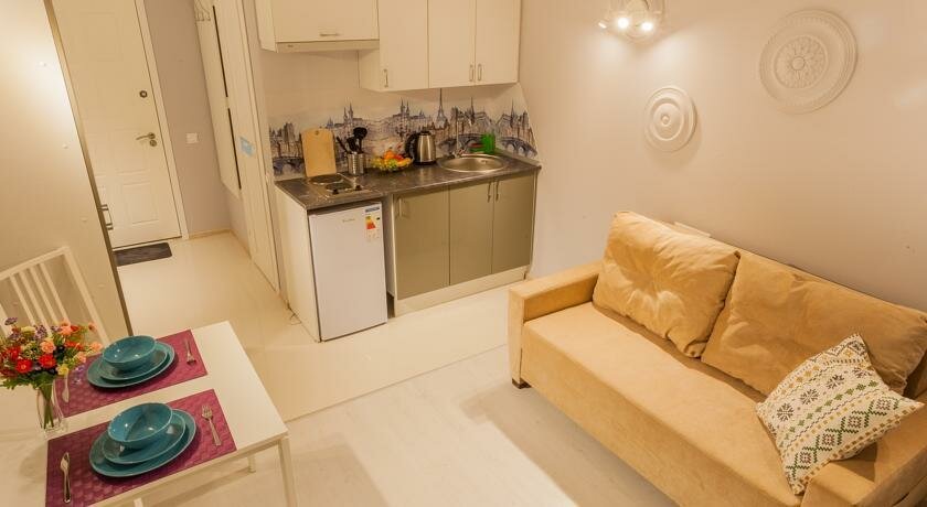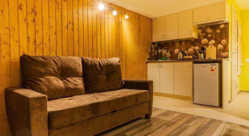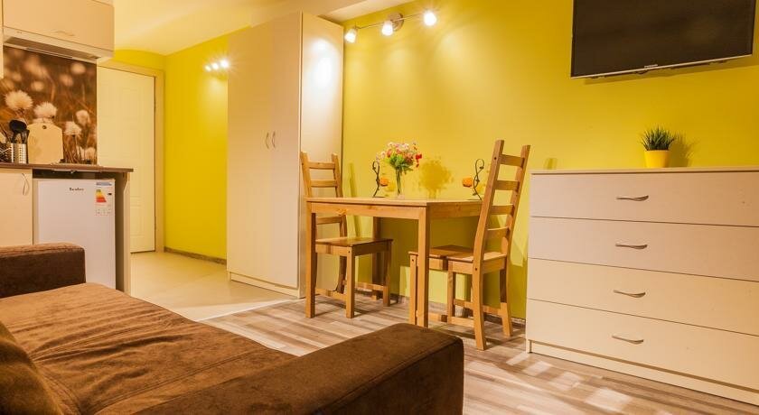 Алиса квартира площадью 20 кв.м с видом во двор.Подходит для размещения 4 человек.Имеет спальню с приятным интерьером.В номере: 1 двуспальный диван, 1 двуспальная кровать.Имеется телевизор, шкаф, рабочий стол, обеденный стол, журнальный стол,...