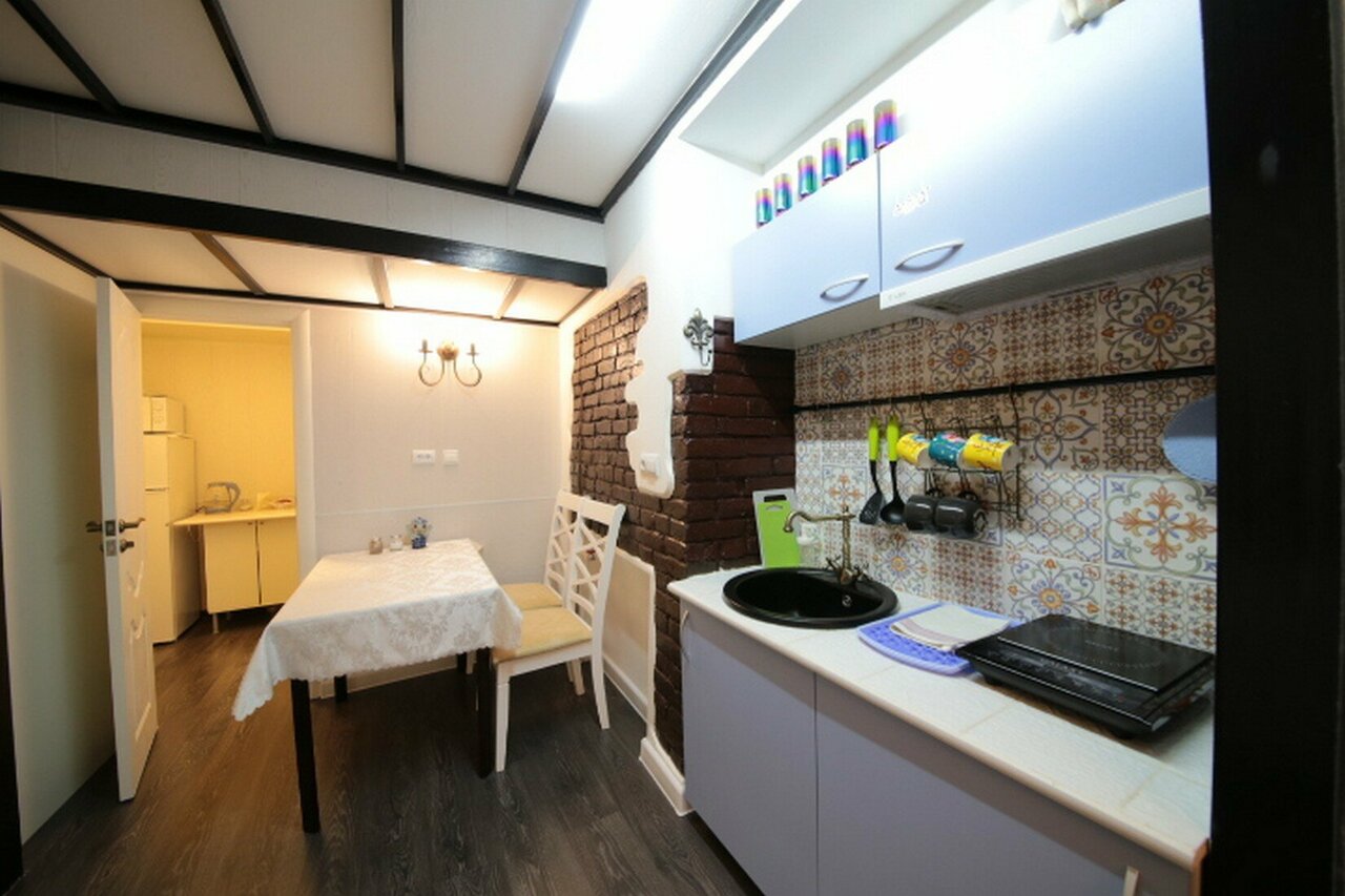 Однокомнатная квартира двухуровневая площадью 32 кв.м с видом во дворПодходит для размещения 5 человек.Имеет спальню с приятным интерьером.В номере: 3 односпальные кровати, 1 двуспальный диван.Имеется телевизор, шкаф, вешалки, рабочий стол, ...