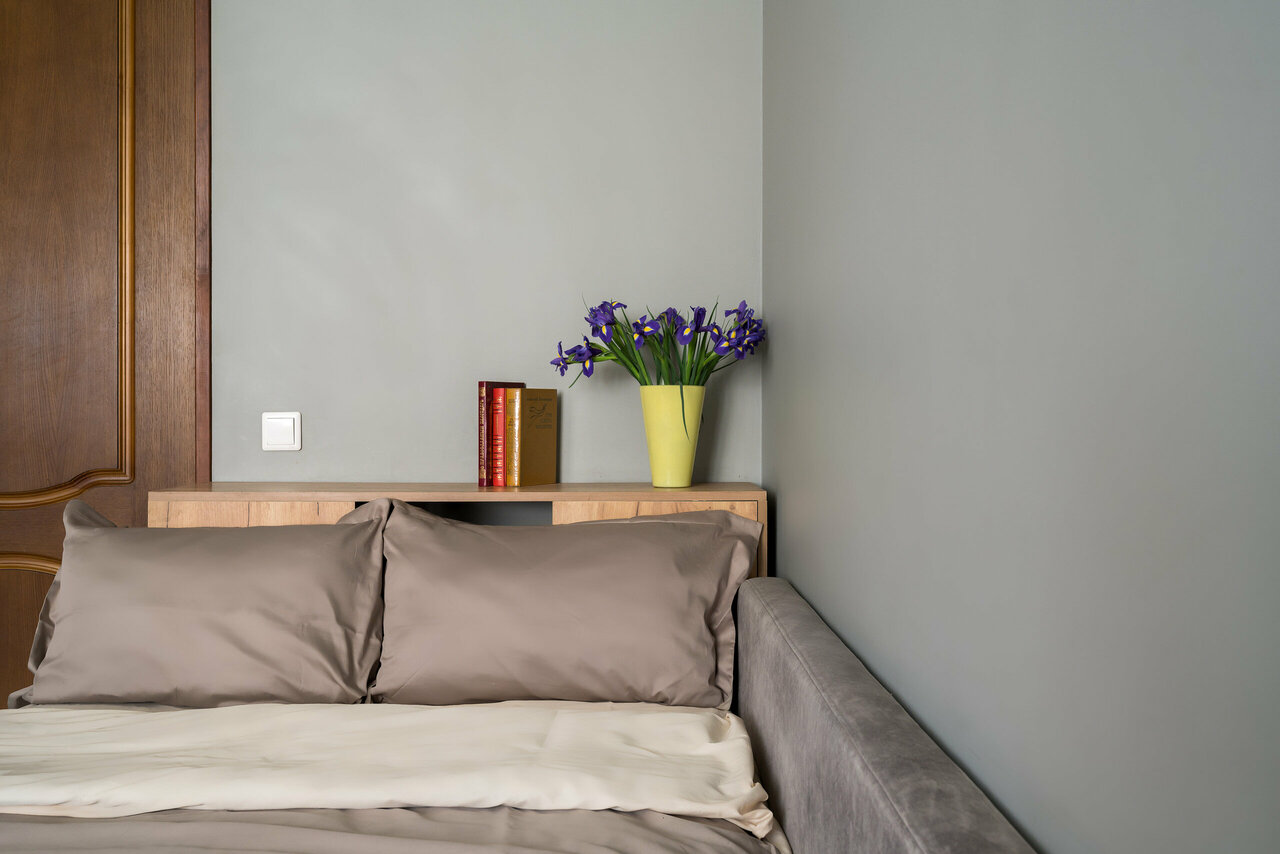 Современный номер в спокойных тонах, оснащенный чайником, феном, телевизором. Указана минимальная стоимость. Цена может отличаться в зависимости от наличия номеров.