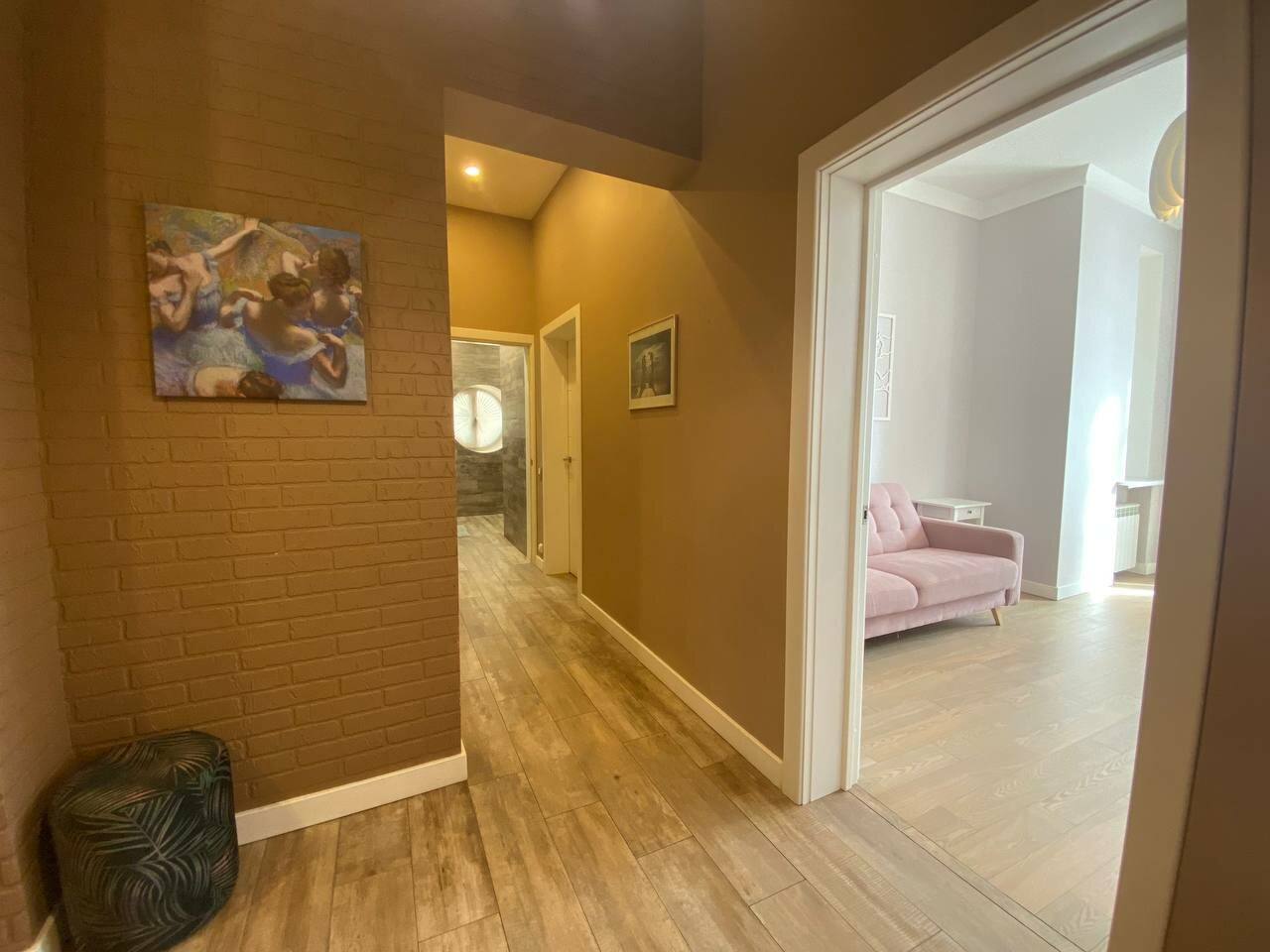 Были здесь с семьей — с мужем и двумя детьми, всем было комфортно — у каждого своя комната. Классный вид из окна, очень стильная квартира машину спокойно парковали во дворе, вход по кодовому замку