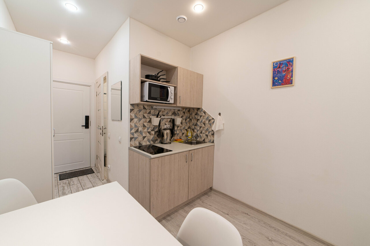 - Удобная кровать.; Возможность разогреть еду.; Удобные номера с кухней, туалетом и душевой кабиной.; Наличие парковки.; Бесконтактное заселение.