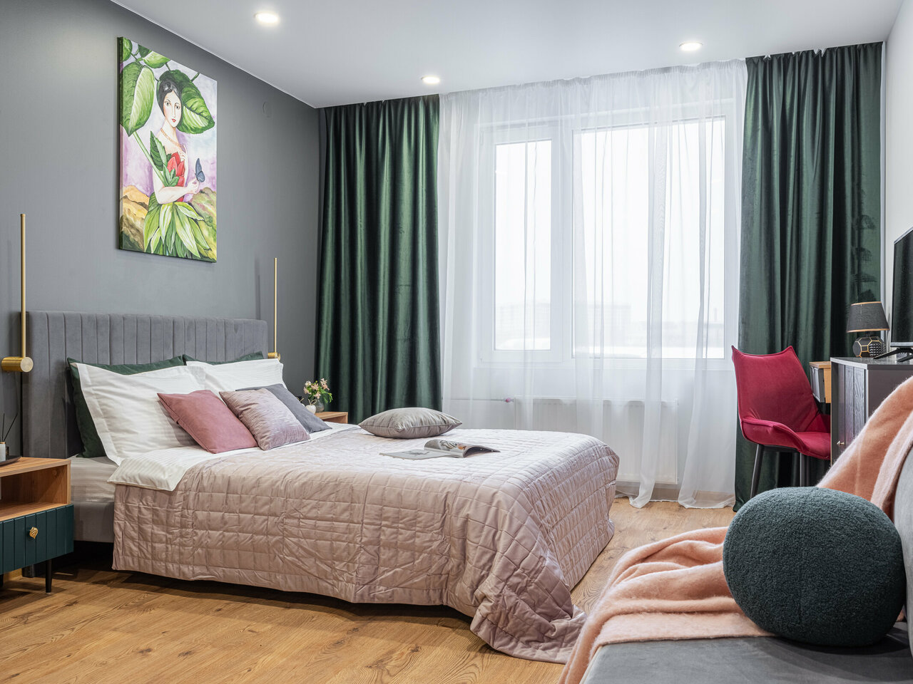 Апартаменты GREEN VELVET покорят Вас своим уютом, атмосферой и яркостью красок. Удобен для гостей с детьми и подростками. В номере полноценный большой диван.