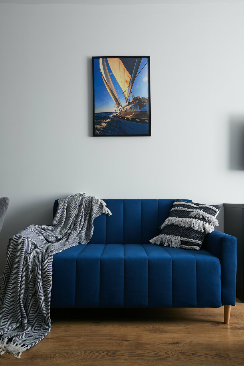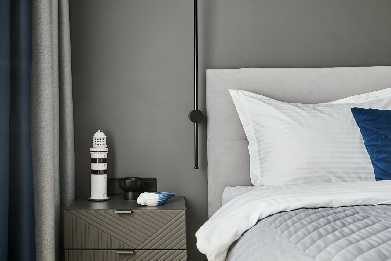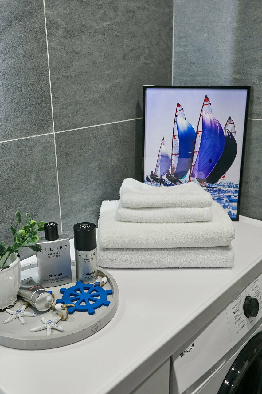Апартаменты Yacht Club от компании Apartments & stories Апартамент создан для путешествий и командировок. Интерьер создан в серо синих оттенках отражающих водную гладь Балтийского моря, Фрегат, Яхт.Апартамент отлично подойдет для путешествий, ...