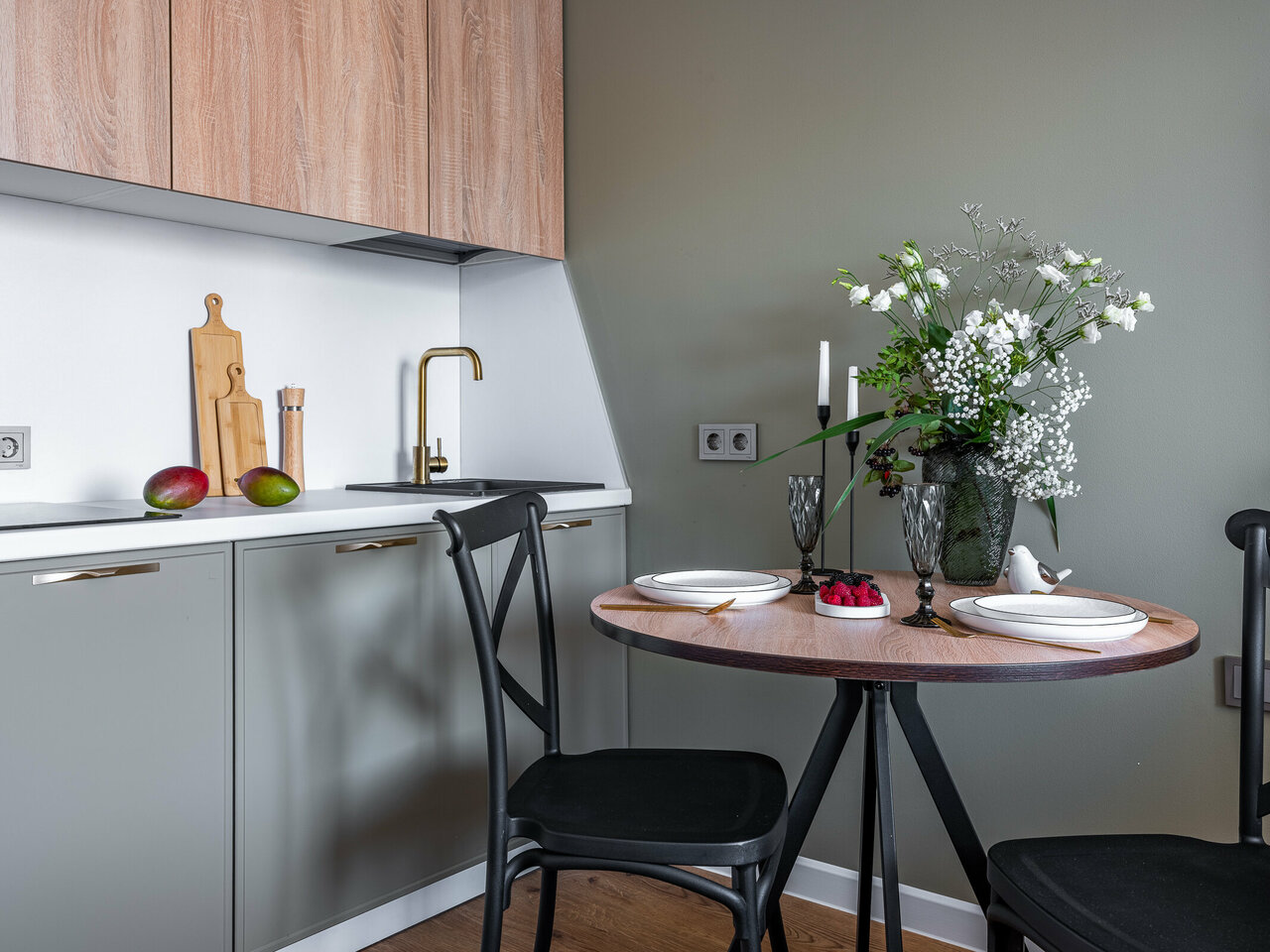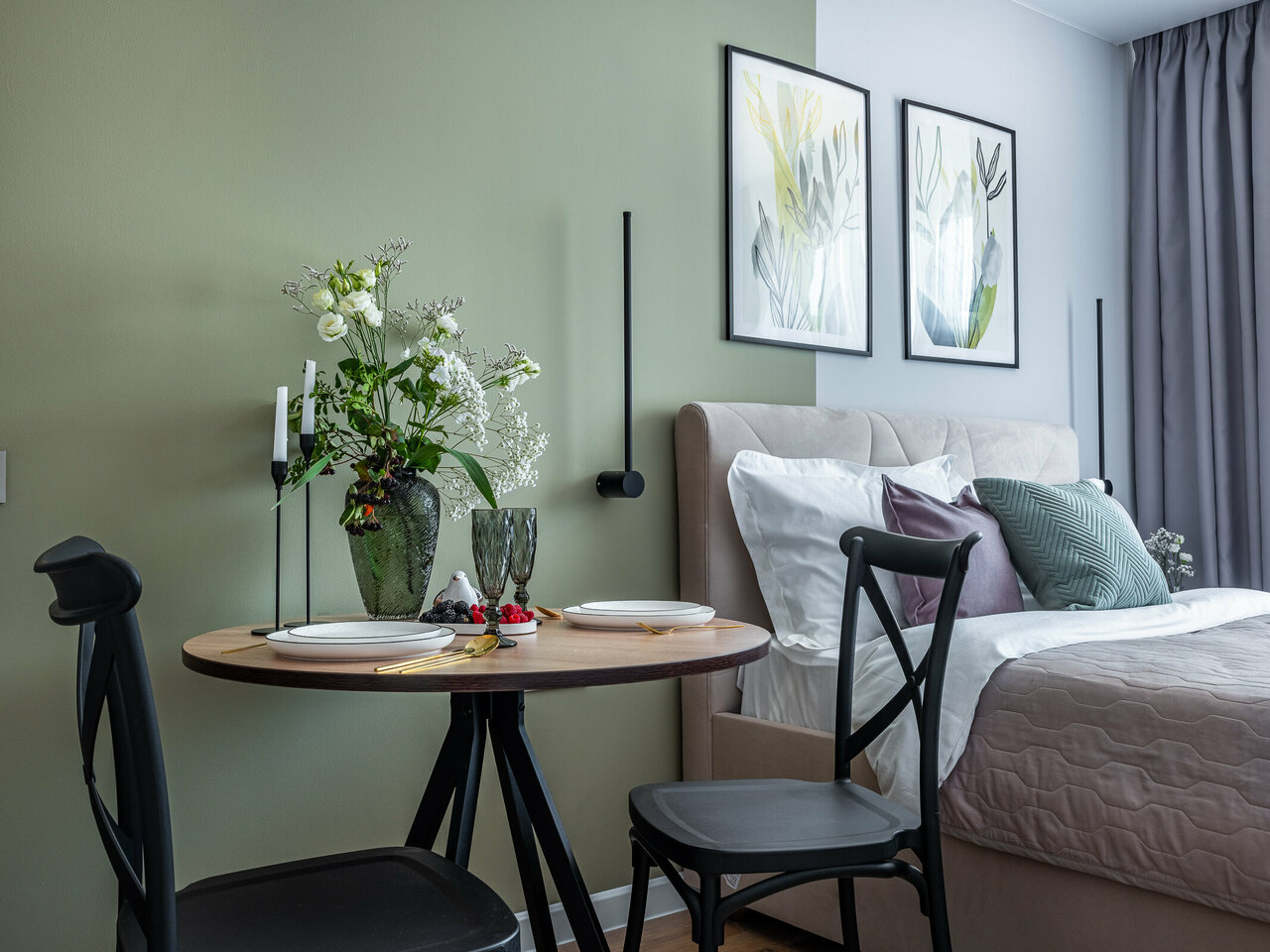 Апартамент для романтических путешествий и командировок создан в цвете Оливы и древесных нот. Расположен у м. Кировский завод
