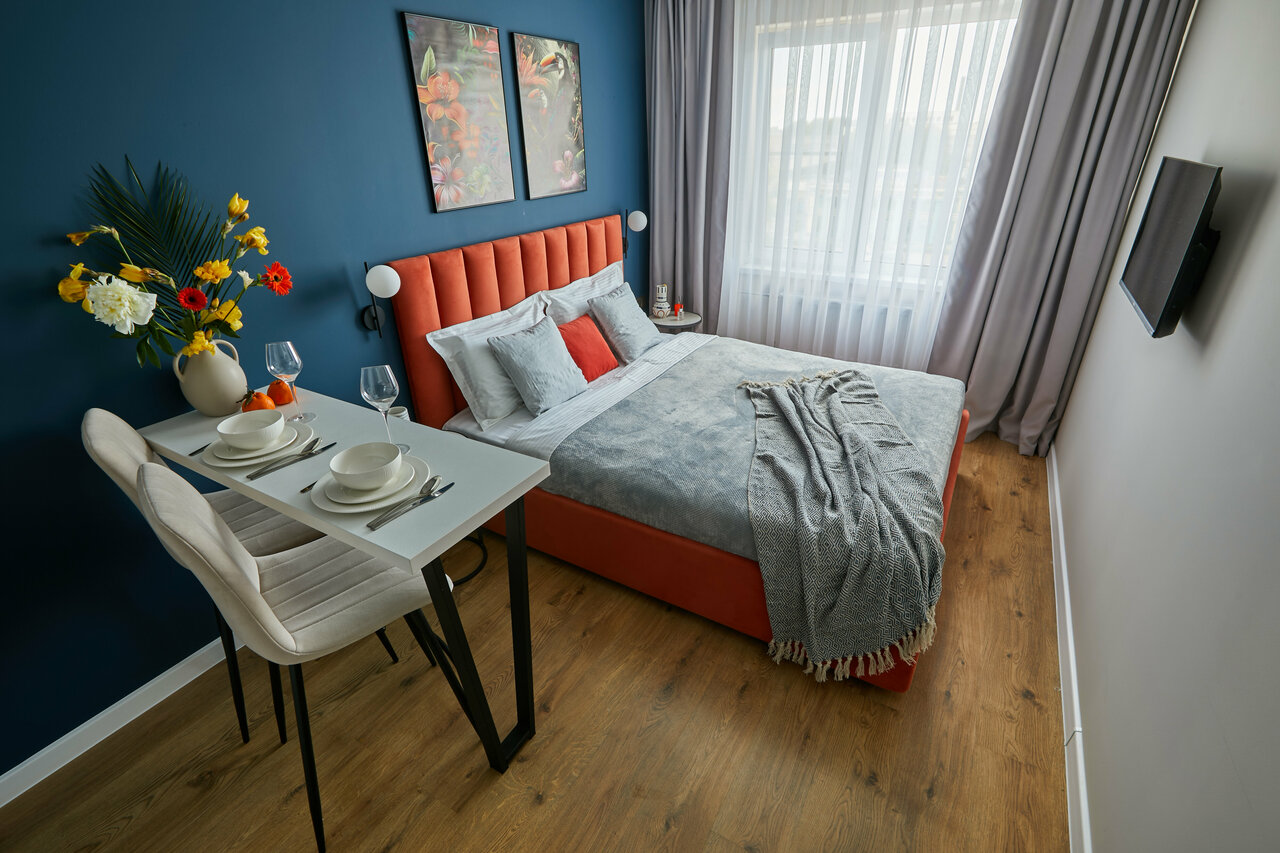 Апартаменты Teracota Brutal с ярким цветовым сочетанием придутся по душе деловым стильным людям