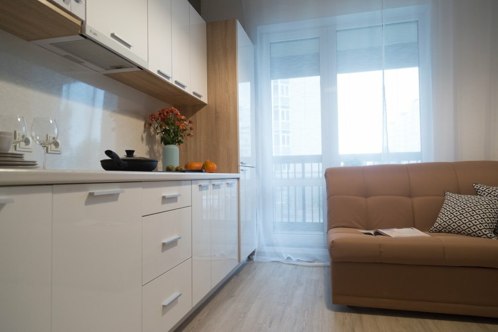 - Балкон, высокий этаж с видом.; Круглосуточная охрана.; Соотношение цены и качества.; Удобное заселение и взаимодействие с персоналом.; Наличие бытовой техники (плита, стиральная машина, микроволновка, посуда).