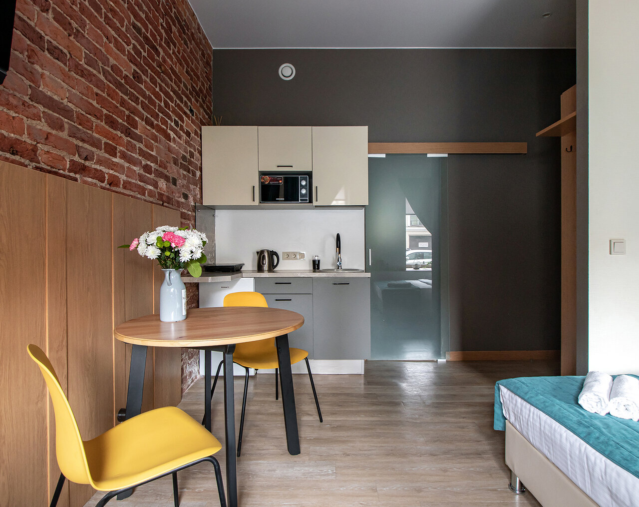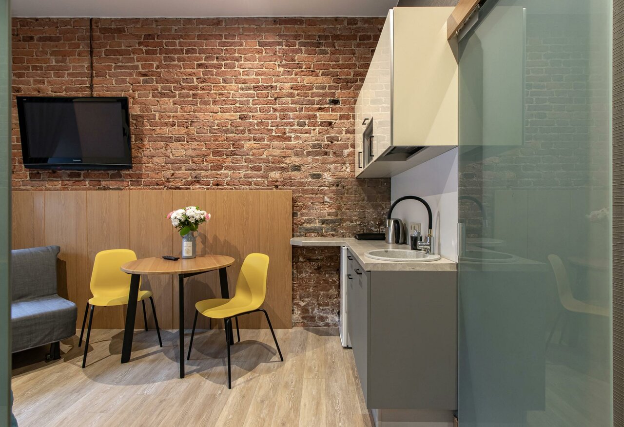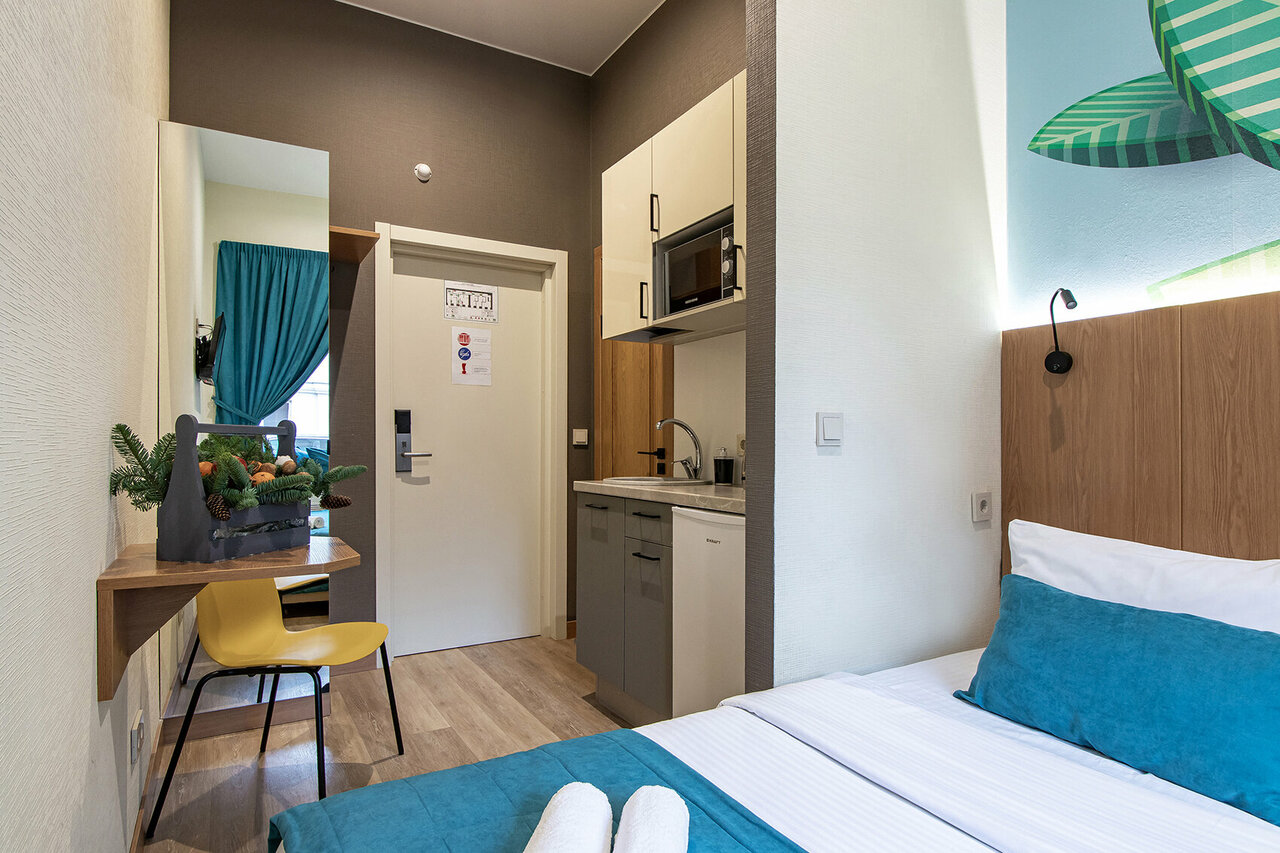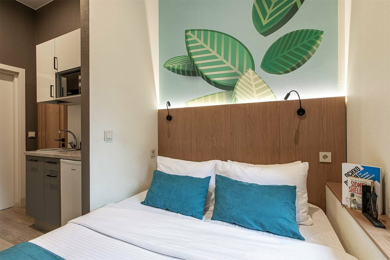 - Дистанционное заселение (по коду).; Современный дизайн номеров.; Уютные номера, чистые и аккуратные.; Отзывчивые менеджеры (помогают, подсказывают).; Наличие мини-кухни с посудой.