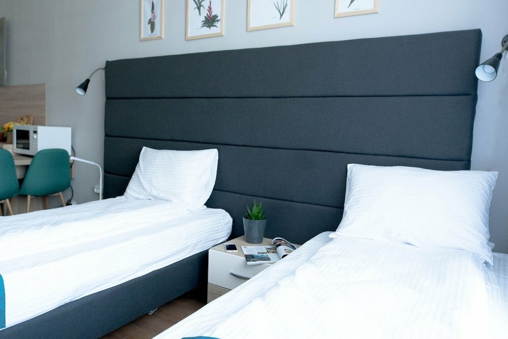 Были в командировке, не советую этот отель. Постельное белье плохо постиранное, матрас весь продавленный, грязный. Подушки не удобные. Ванная плохо убрана, кругом волосы. Ужас просто. Уборка проводится 1 раз в 3 дня и то по звонку, ресепшена в отеле нет. Расположение отеля странное: до метро Старая Деревня пешком идти 1 км, одна радость рядом парк. Магазинов рядом нет, до ближайшего надо идти 1 км пешком. Я бы присвоила этому отелю 1 звезду и то от жалости.