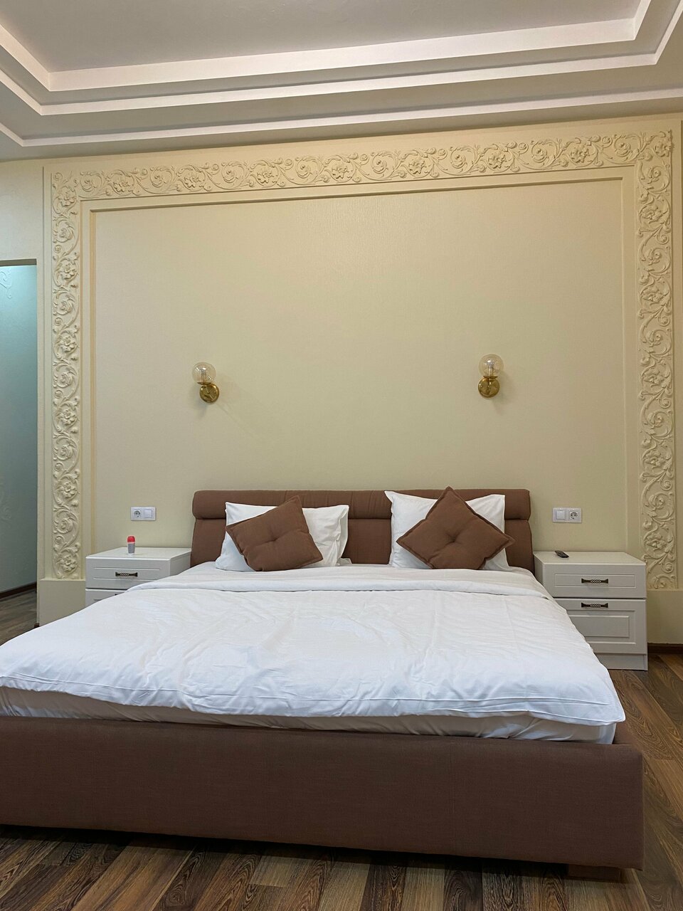 Стандартный номер с одной большой двумя раздельными кроватями. Вид во двор, есть небольшая кухня. Тихий, уютный, комфортный.