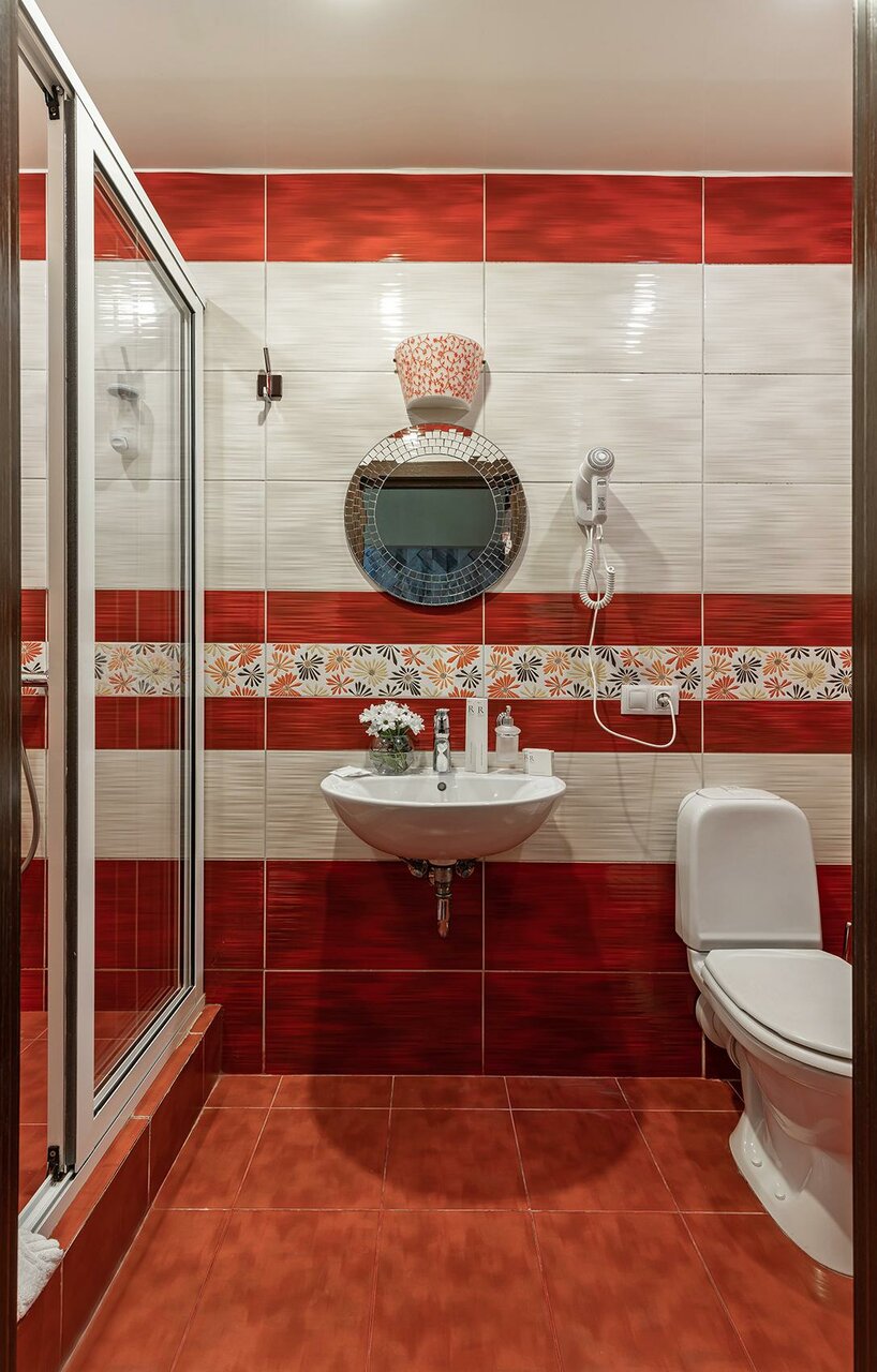 - Плохая планировка номера (стеклянная душевая рядом с кроватью).