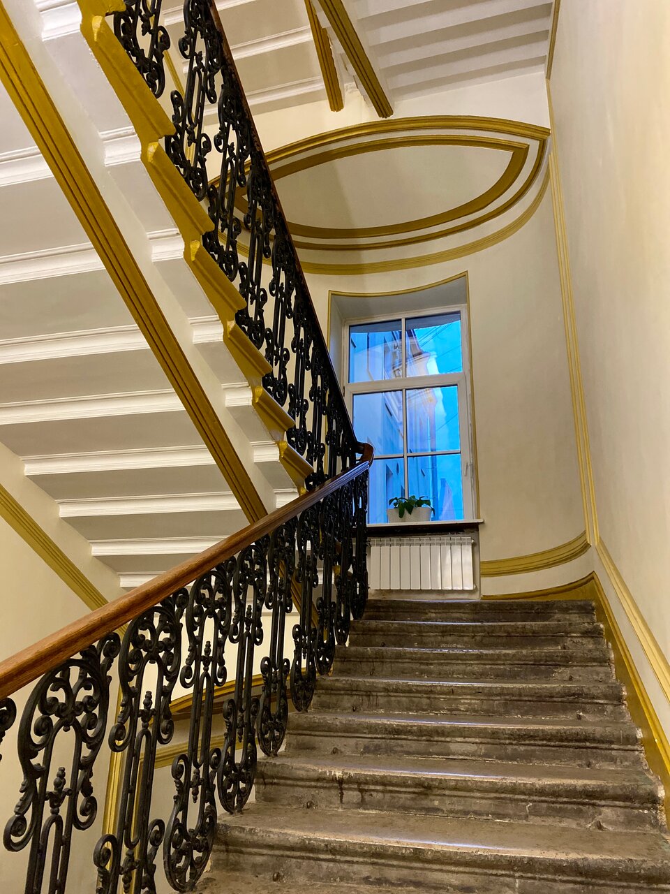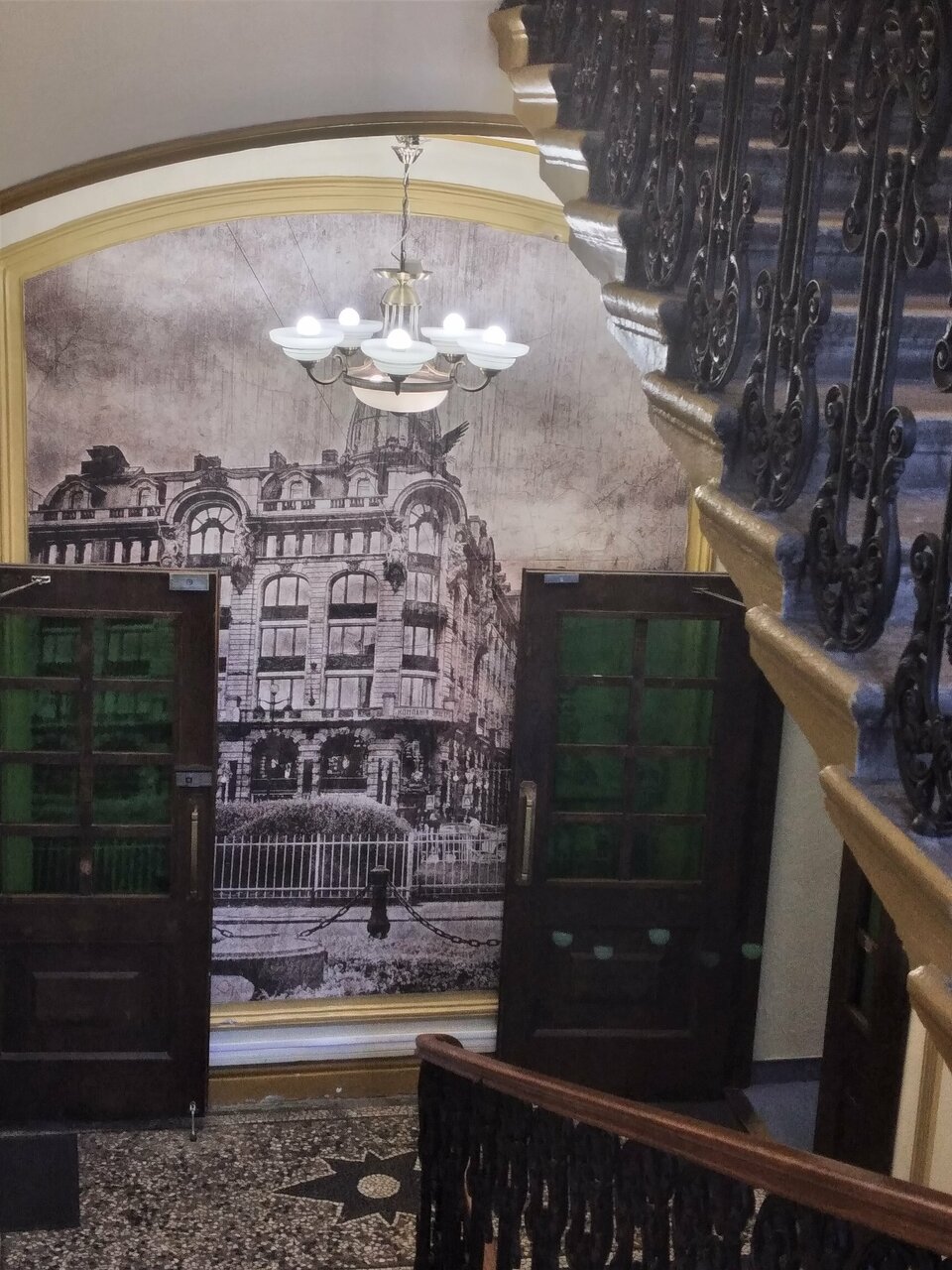 Жили в Делюкс, двойке ( в котором потолки с кессонами, смотри на сайте). Что сказать — душ работает, туалет работает, вода горячая есть, чай/сахар/чайник в наличии, кулер и посуду взяли на верхнем этаже. Три окна на Невский, второй этаж. Телевизор показывает, есть кондиционер, он работает, но свистит крыльчатка в двигателе, шумно очень, обошлись вентилятором ( был в номере). Многие пишут про тонкие стены, не знаю, мы ничего не слышали, шумит только Невский, но мы сами питерские, мы его не слышым)). В наличи шампунь/гель/ зубные наборы. Номер хороший, местами очень пошарпанный, но это нормально, если учесть стоимость 4800 за сутки, в центре города. Звезду снял за запах в туалете, стоит фекальный насос, при его работе подсасывает воздух из фанины.