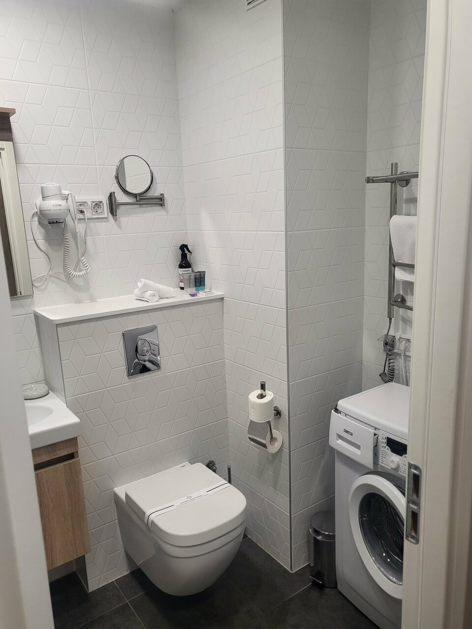 Отличное расположение, очень вежливый и приветливый персонал, апартаменты чистые, современные, комфортные, все что нужно есть. Без проблем припарковал авто на улице бесплатно
