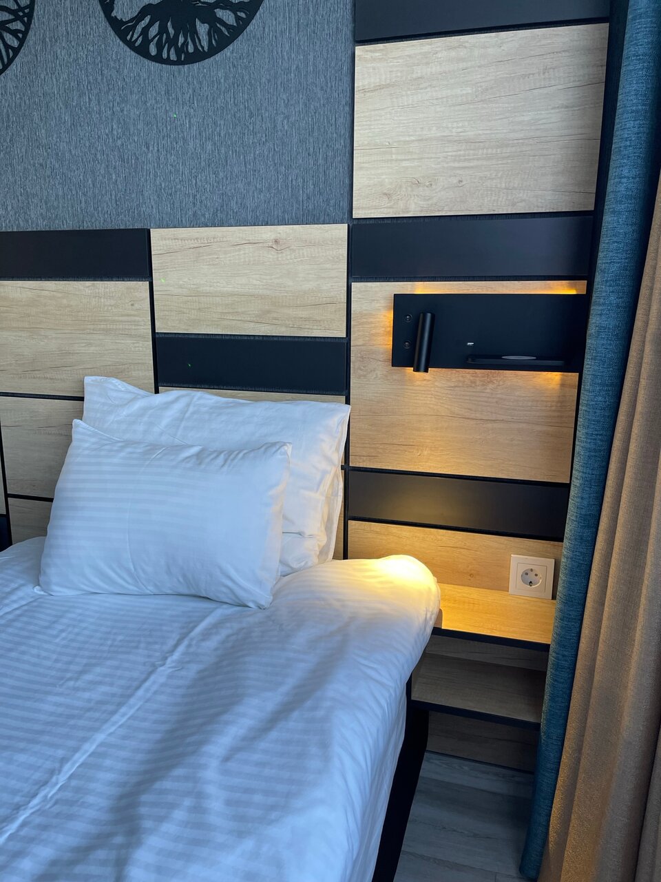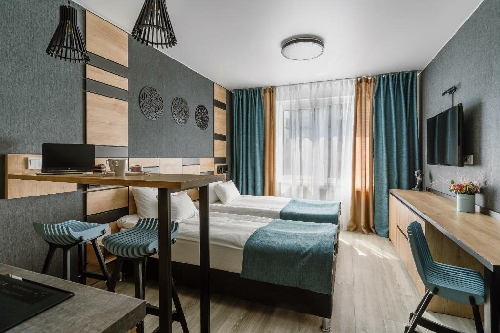 Все очень достойно ,стильнл,удобно,в номерах есть все для комфортного прживания,чистота идеальная.все новенькое. Не пожалели ни на минуту что выбрали именно этот отель а не в центре более попуоярные. Бронировали два номера,по соседству, очень удобное расположение метро в шаговой доступности.