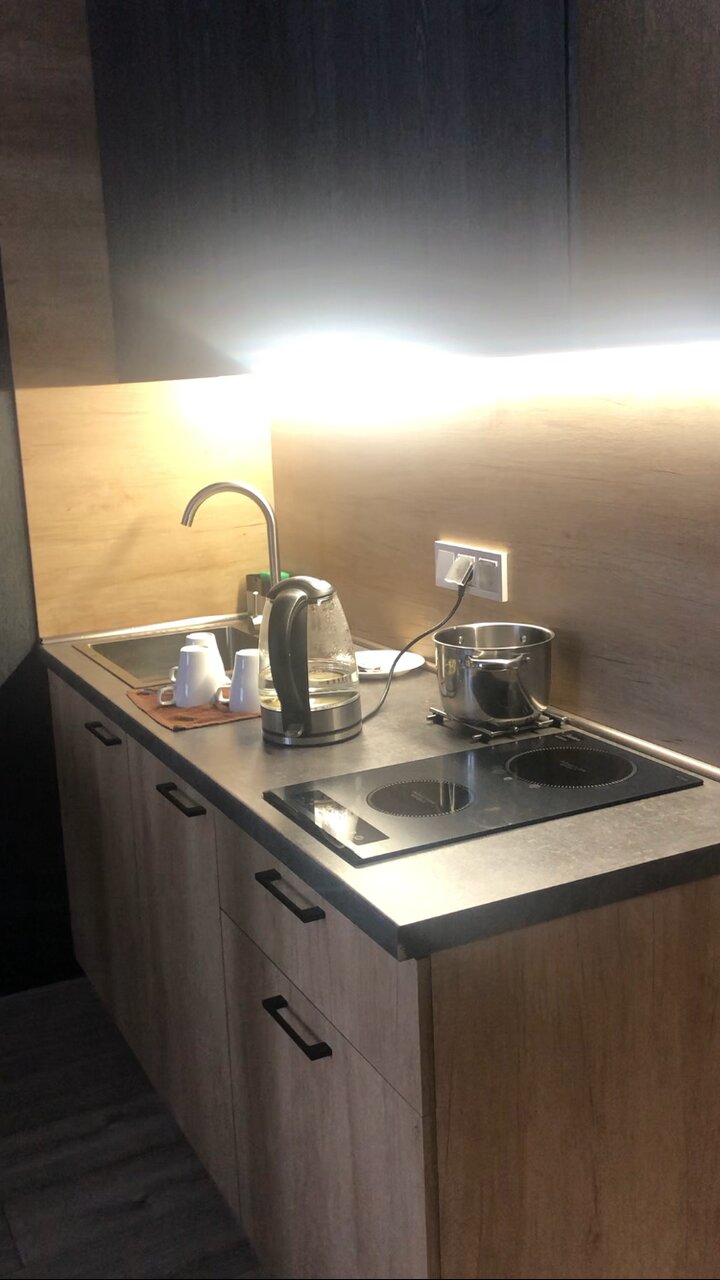Апарты огонь!!! Чисто, уютно и со вкусом! Персонал отзывчивый, приятный в общении. Пошли настречу и помогли с ранним заездом. В номере есть все необходимое! Стиралка, фен, ванная, средства гигиены. Кухня — это отдельный плюс! Винные бокалы доставили в номер по желанию! Порадовали качели на балконе и беспроводная зарадка!!!) Супер! Будем в Питере однозначно вернёмся снова к Вам!!!