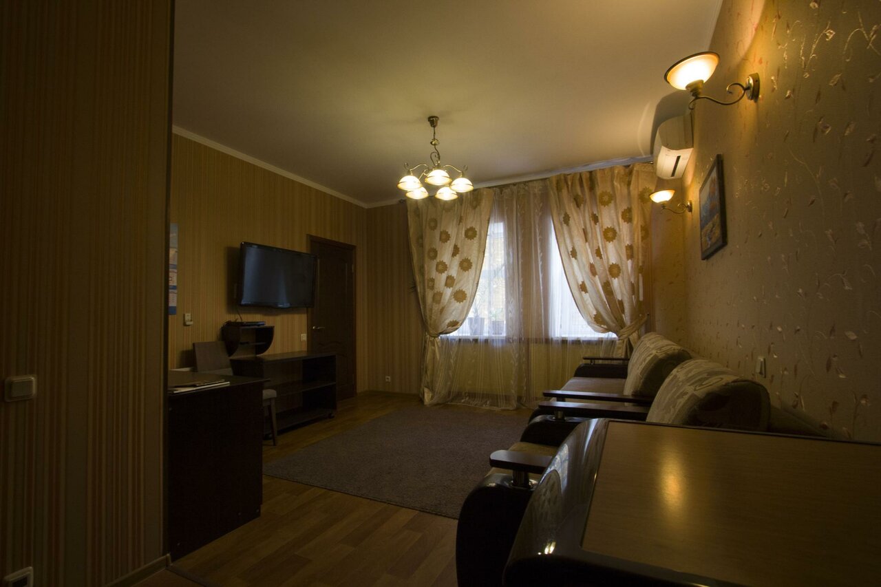 Стандарт-комфорт большая кровать, с сан. узлом, душем и возможностью доп размещения двух человек, на дополнительной односпальной кровати и диване.