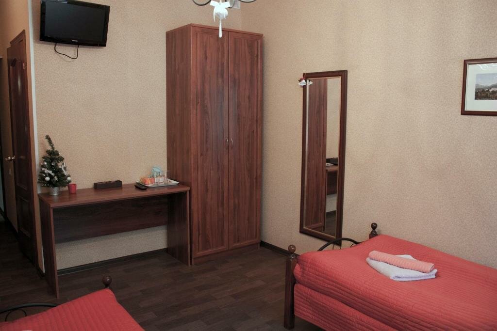 Номер эконом варианта с общим сан-узлом и душем. Раздельные кровати.