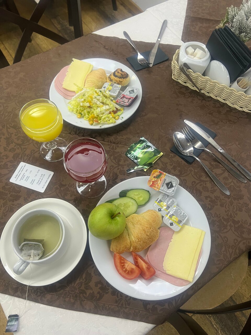 Отличное место ! Заселили раньше времени заезда, что очень удобно Отопление на майских праздниках тоже порадовало. Боялись, что замёрзнем Чистый номер, ежедневно меняют полотенца, застилают постель Хороший ресторан на 1 этаже , говорят вкусная пицца в печи (сами пиццу не пробовали ) Единственное но: Вода в номере в бутылках только при заселении, мыльные принадлежности также. Далее не добавляют. Жили 4 дня Завтрак однообразный , но все есть: каждый день блины с творогом, хлопья с молоком, нарезка — колбаса, сыр, йогурт, круассаны огурцы, помидоры в нарезке, яблоки , апельсины Очень вежливый персонал. Встречали как дорогих гостей В целом, все отлично , вернулись бы ещё