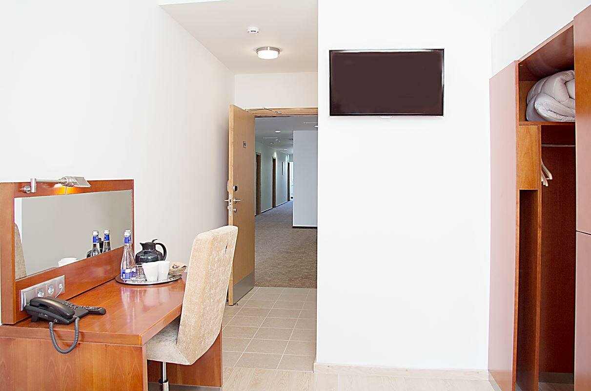 Однокомнатный комфортабельный номер площадью 20 кв.м.В номере:две односпальные или одна двуспальная кровать с ортопедическими матрасами, рабочая зона, мягкие кресла, ж/к телевизор, общая система вентиляции, индивидуальная система отопления, душ...