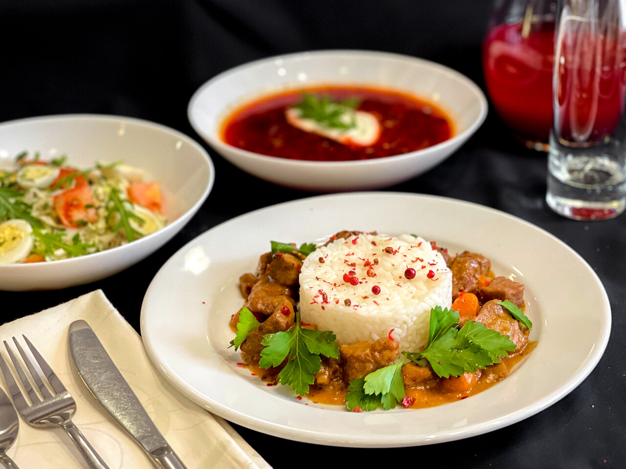 - Собственный ресторан с хорошей кухней.