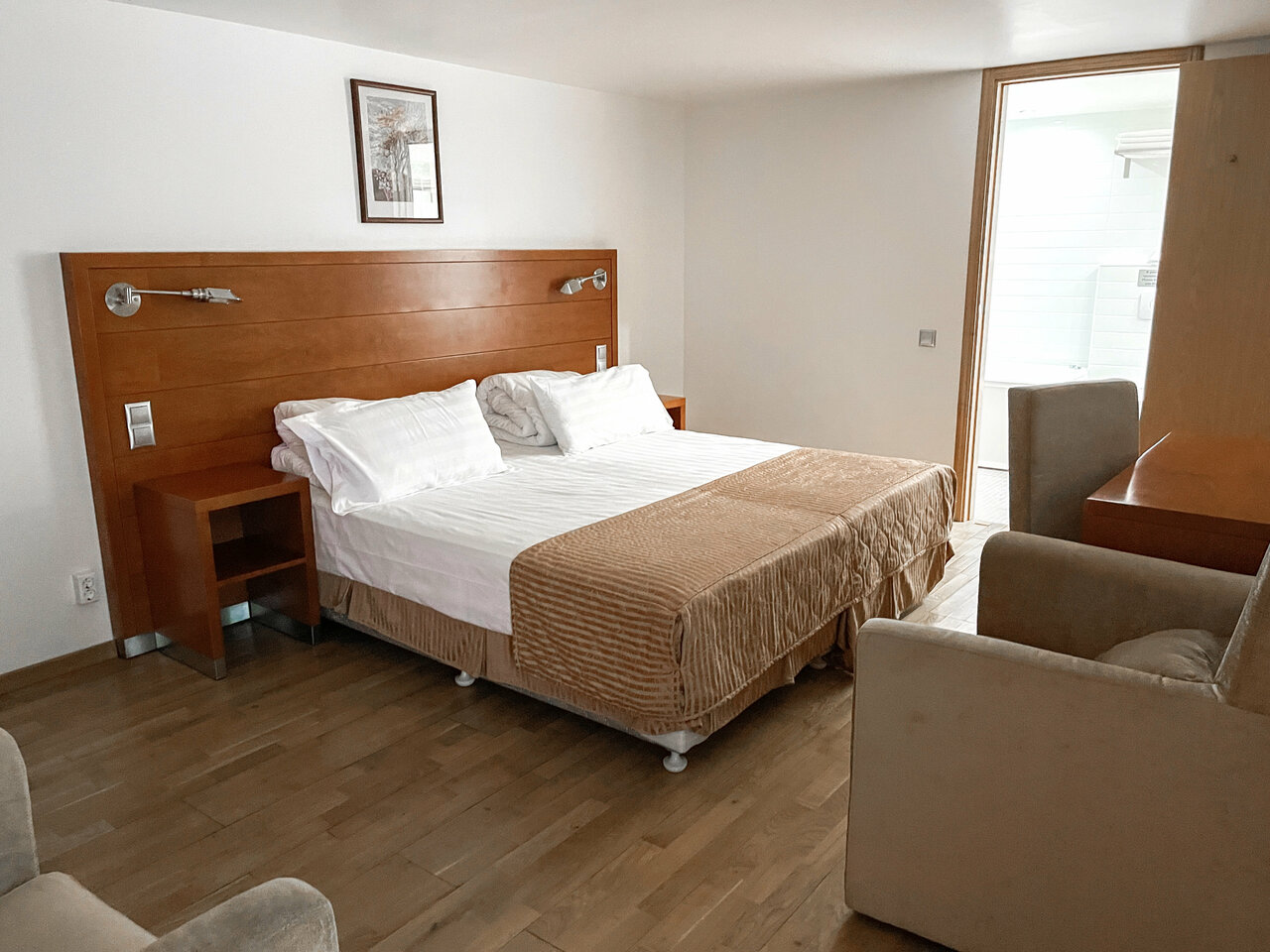 Номер отвечает высоким современным требованиям: продуманное зонирование пространства, функциональность и простота интерьера послужат прекрасным антуражем для приятного отдыха. Подойдет и деловым людям, которые не привыкли отвлекаться на мелочи.