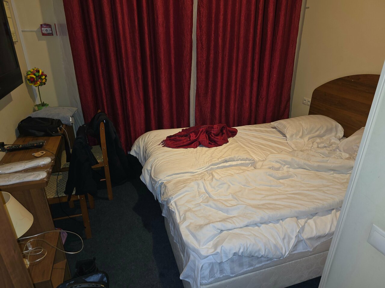 Стоит своих денег в номере был тен на стене, быстро грел помещение, телевизор, совмещённый через шторку сан узел, Не понравилось только сдвоенная кровать, вернее матрасы, при употреблении спального места они просто раздвигались, я был с супругой и удобно спать вместе трудно было.