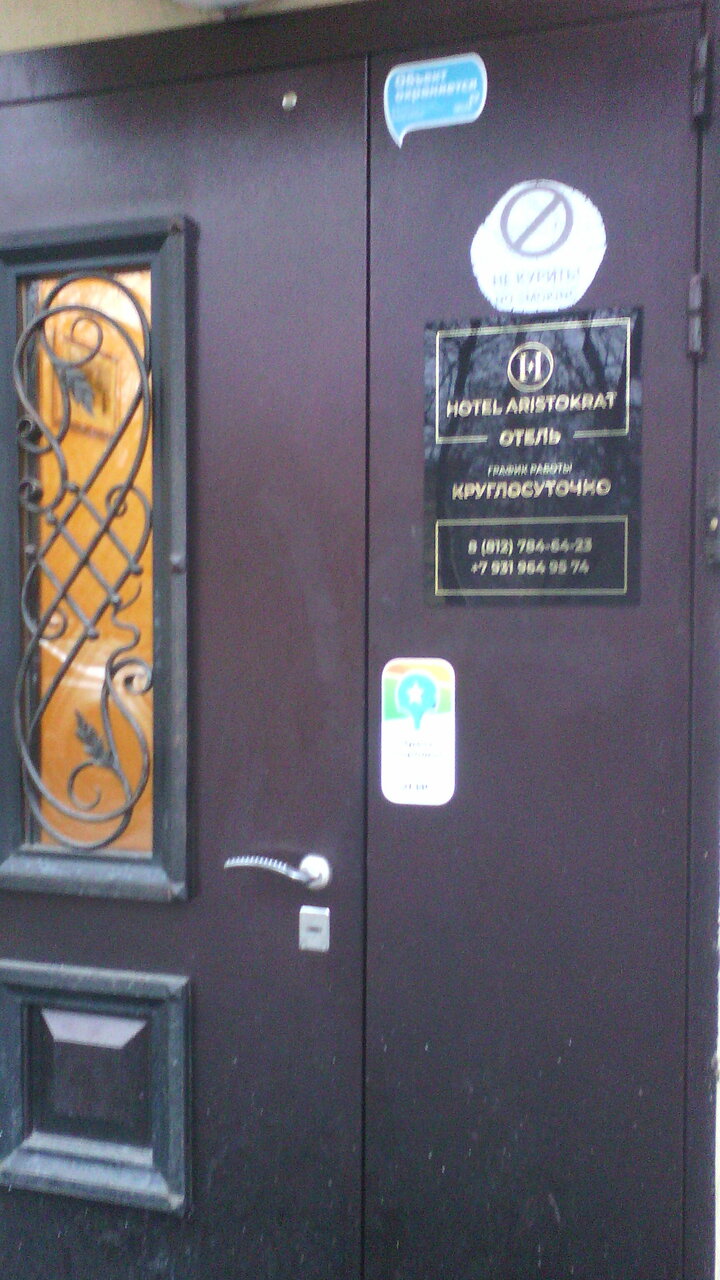 Заселение с 14:00, выезд до 12:00. Телефоны: +7 (981) 153-60-05, +7 (812) 784-64-23. Сайт: vk.link/hotel_aristokrat(https://vk.link/hotel_aristokrat).