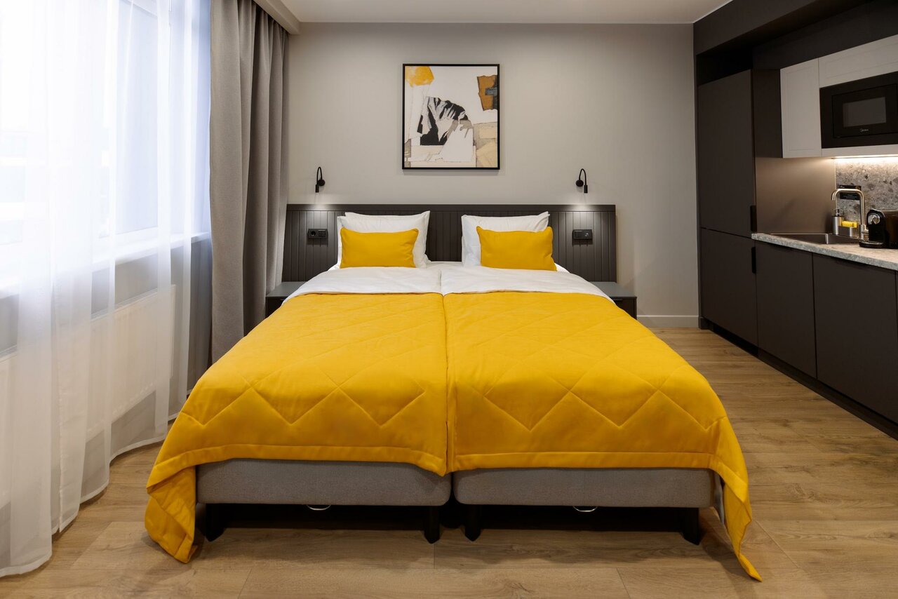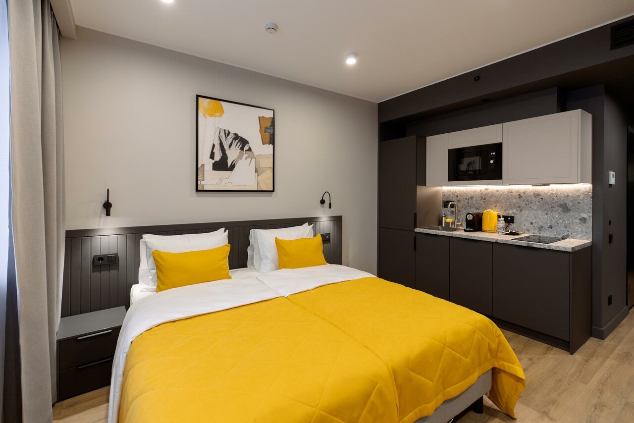 Все еще проживаю в этом отеле, выезд завтра, но не терпится написать отзыв. Невероятно стильные апарты, вежливый персонал, номер просто идеален для жизни — есть вся посуда, халаты, полотенца, вкуснейшая косметика для волос и тела, утюг, даже порошок на одну стирку Сразу видно, что все сделано с душой и продумано до деталей. Везде чистота, сам отель современный и красивый, внизу великолепный ресторан. Вернулась бы еще обязательно, чтобы поспать на этой удобной постели! Один минус: в нашем номере плохо работает интернет, не подходит для удаленной работы, только для расслабления
