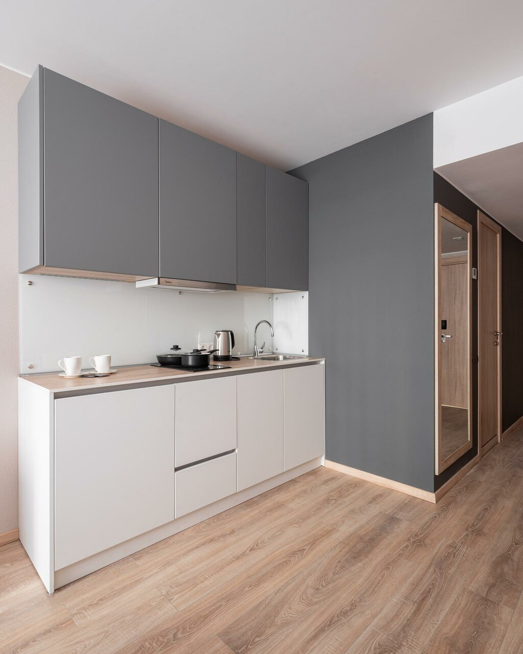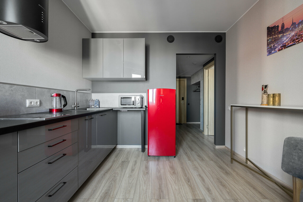 - Наличие кухни и всей необходимой техники (стиральная машина, чайник и т. д.).
