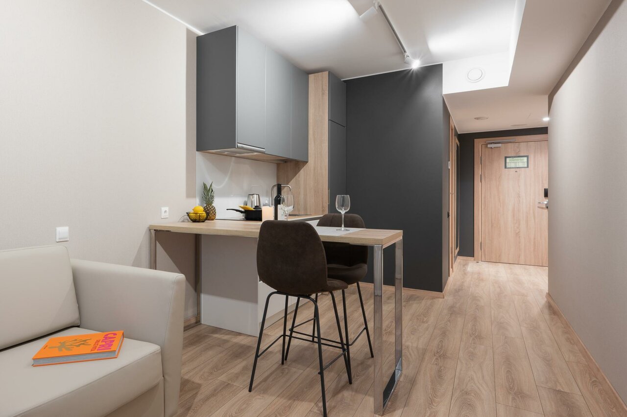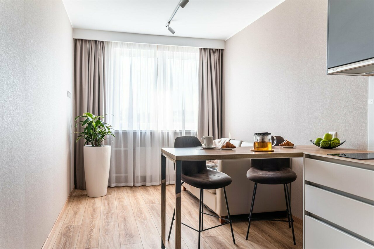 Отличные апартаменты! Красиво, чисто, аккуратно. Всё есть для удобного и комфортного проживания. Внизу кафе, где можно вкусно позавтракать. Близко к центру. Рядом метро, паркинг. А ещё булочная со свежим хлебом. Персонал приветливый. Место классное. Highly recommended.