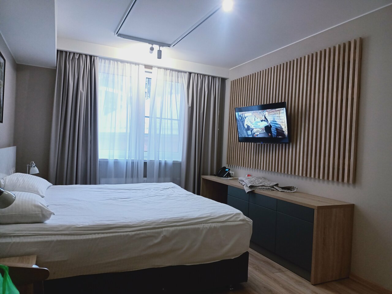 Апарт-отель полностью оправдал ожидания. Расположен недалеко от метро. Номер был как на фотографии и включал всё, что указано на сайте. Соседей не было слышно, если кто-то говорил в коридоре, то да — небольшая слышимость была, но это не мешало. Порадовала концепция отеля — можно написать письмо и опустить его прямо в ящик на 1м этаже, также в номере были qr-коды, отсканировав которые можно было послушать интересные истории. Авторам браво! Завтрак не брала, но на 1м этаже есть небольшое кафе или можно заказать доставку. Вокруг много магазинов. В номере было всё для самостоятельного приготовления еды. Уборка была на 3й день, но чаще и не требовалось. Есть множество дополнительных функций. Из минусов только отсутствие кондиционера — было жарко, вроде можно попросить вентилятор (где-то видела в отзывах), но открытого окна мне было достаточно. Надеюсь снова посетить этот замечательный отель!