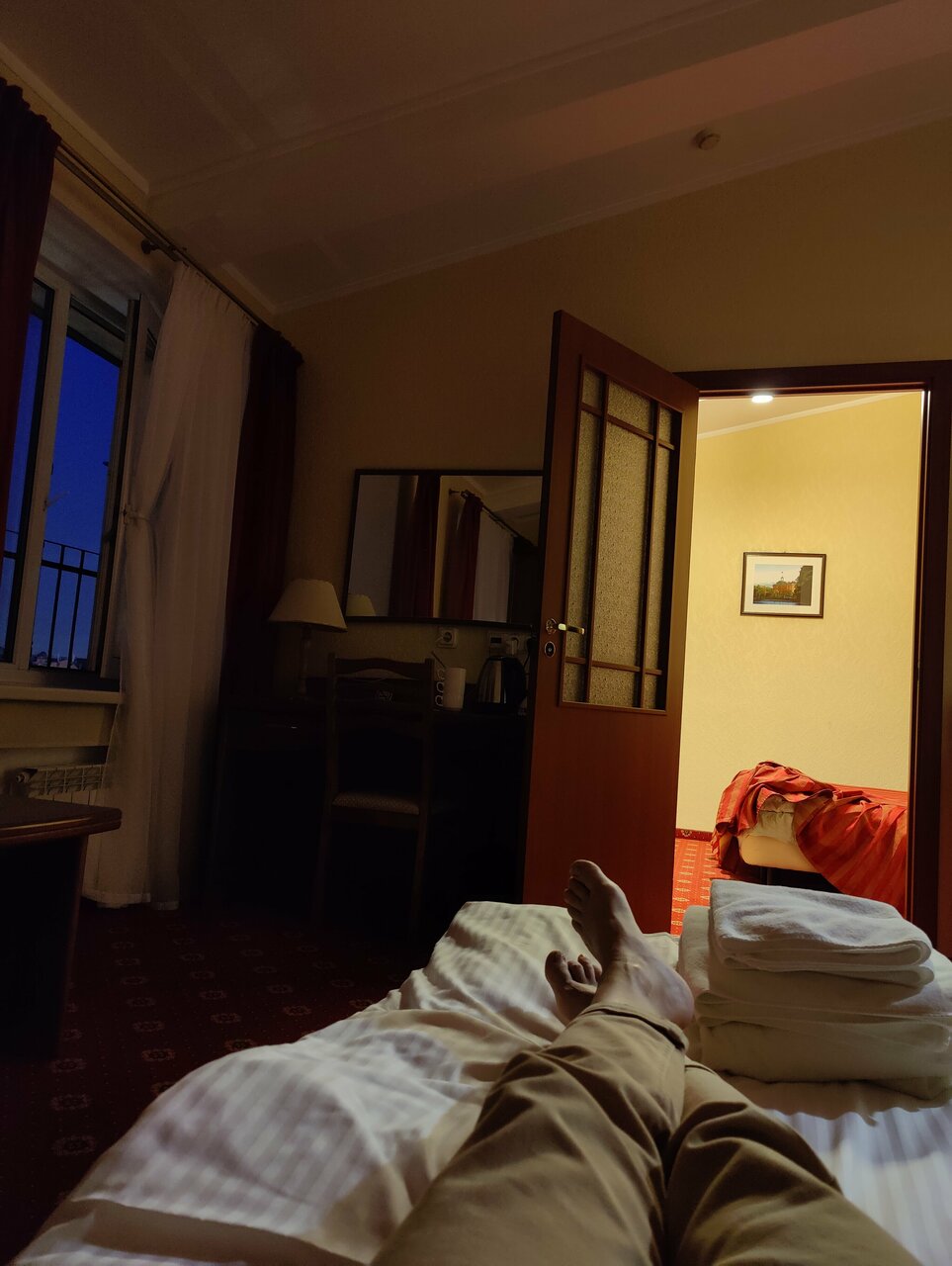 Неплохая гостиница для людей без сверхожиданий. Внутри тихо, все работает, сотрудники вежливы, завтраки неплохие, вода в кулер свежая. Кровать удобная, расположение отличное. Булочная Хлебник в этом же здании обязательно к посещению. Единственный минус номеров с окнами на Фонтанку шум дороги ночью. Так что приходится выбирать вид или тишина с окнами во двор