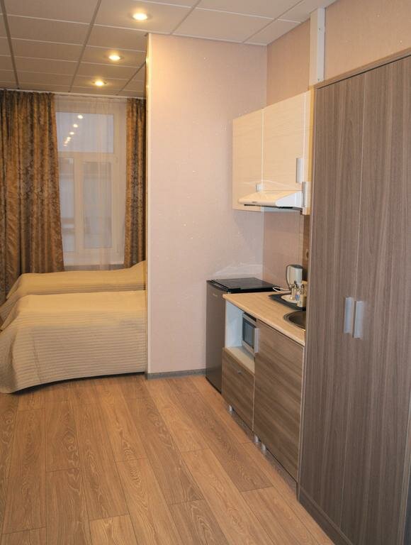 Приличный отель за вменяемые деньги рядом с Большим проспектом, метро в 10-15 минутах пешком. На Ропшинской номер аккуратный, чистый, приятный. Единственное-мне достался не с кухней. В прошлом году жил на Красного курсанта. Номер маленький, но с кухней. Недостаток был-двухместная скрипучая кровать.
