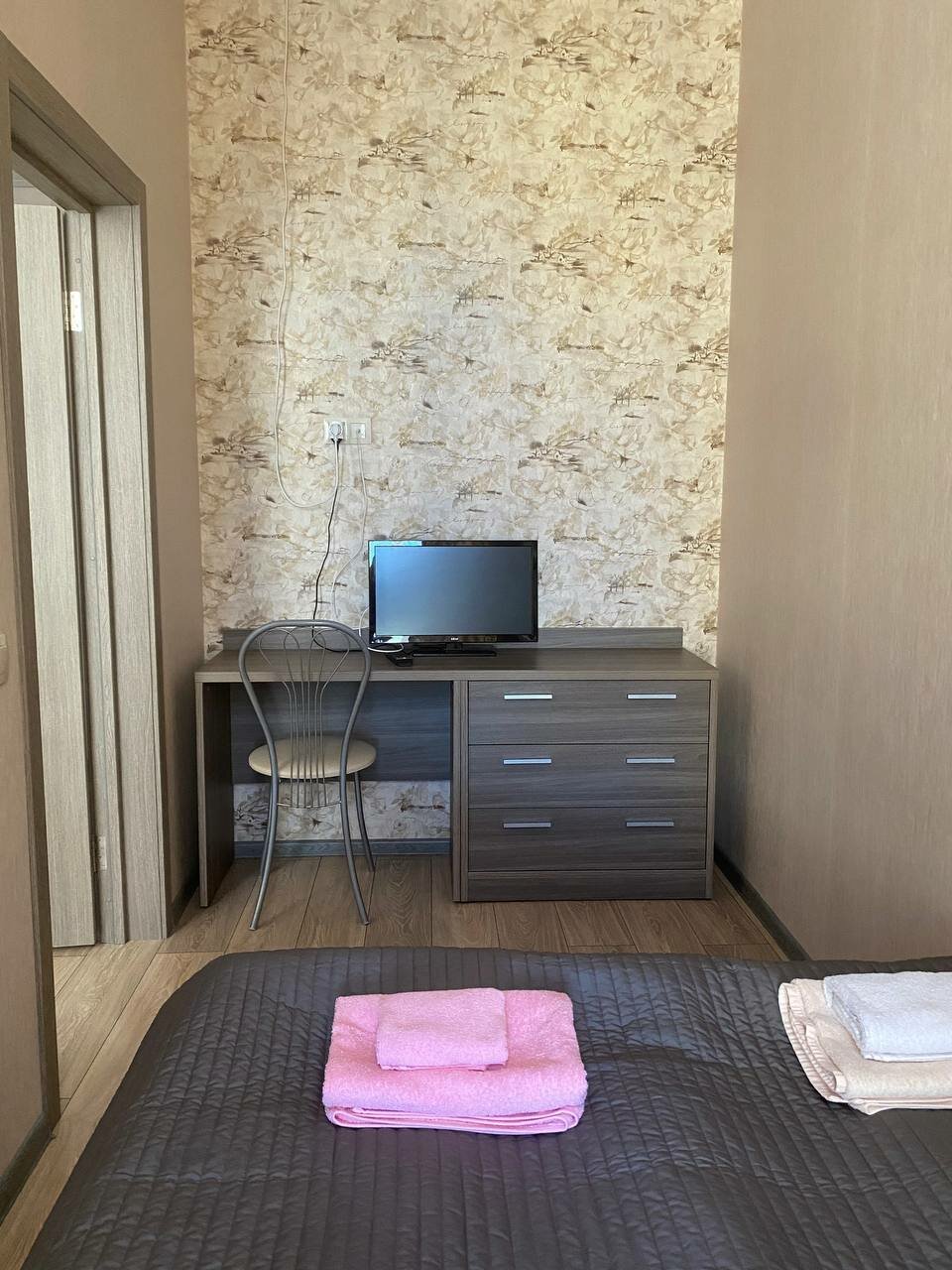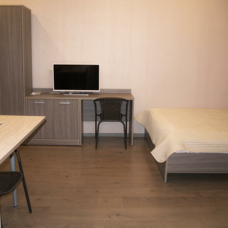 Я был в номере ‘Стандарт’ на троих. Чистый и просторный номер. Было 2 кровати и кресло-раскладушка. В номере так же есть холодильник и отдельный санузел (Душевая кабина и туалет). Есть общая кухня с микроволновкой и кулером. Вайфай — проблемный, но имеется. Очень хорошее расположение. Единственный минус — нет своей парковки: либо искать соседние дворы, либо платная под окном. По возможности приеду сюда вновь.