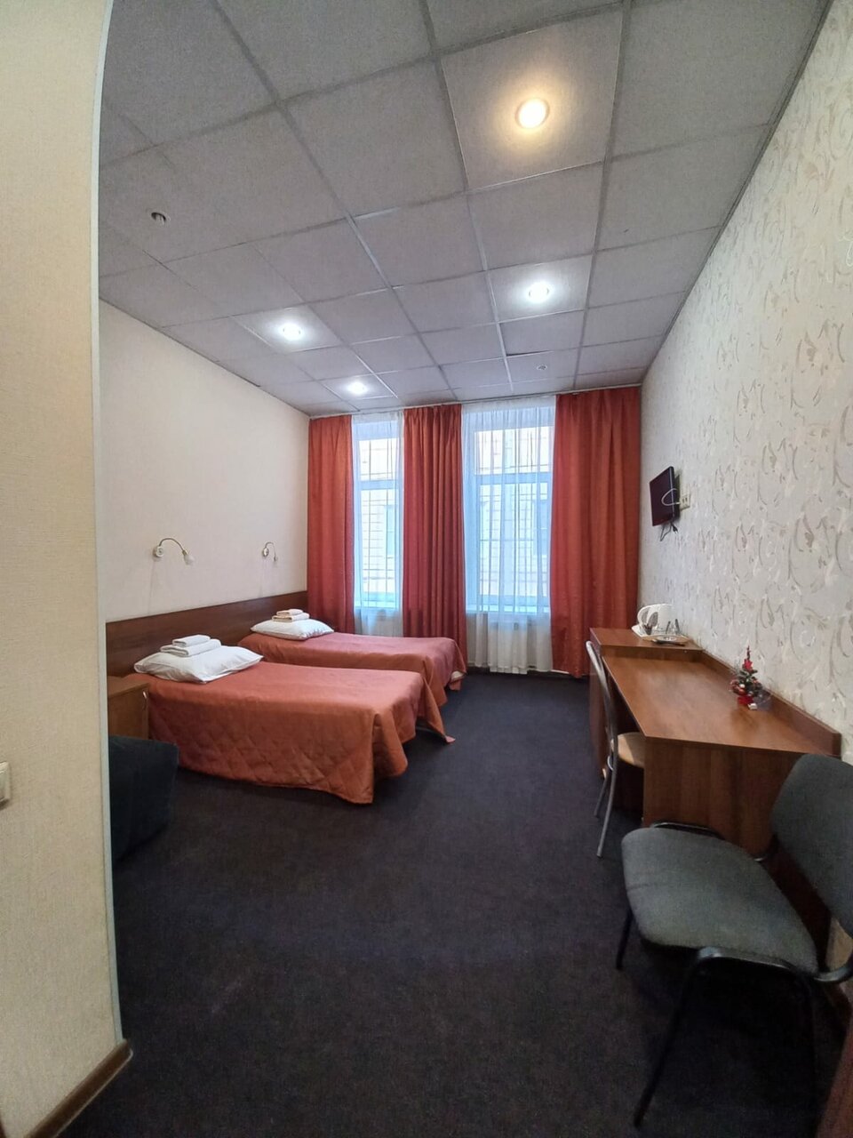 Жили в отеле 5 дней. Все прнравилось. Расположение удобное- метро рядом, до Эрмитажа пешком 50 минут. Трехместный стандарт вполне приличный: с душем и санузлом, с феном, чайником, телевизором и холодильником, удобными кроватями + маленький раскладной диванчик, на полуковролин, чай, гель-шампунь, тихая улочка. Нет готовых завтраков, но есть небольшая кухня с микроволновкой, утюг. Особое внимание работе администрации: все наши просьбы оперативно исполнялись, хоть и общение происходило через WhatsApp. У нас был поздний выезд-нам разрешили дополнительное проживание без доплаты. Цена проживания тоже очень приятная) Обязательно внрнемся еще)