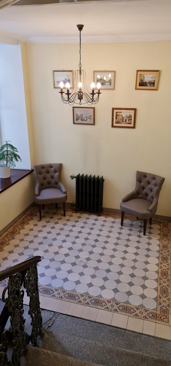 Интересная гостиница, брали два разных номера, один стандарт, в главном корпусе здания, большой номер с двумя кроватями, вид на улочку, все необходимое есть. Завтраки на втором этаже , выбор отличный. Второй номер -апартаменты, нужно через ворота войти с торца здания, это конкретно однокомнатная квартира со всем необходимым, вплоть до стиральной машины.