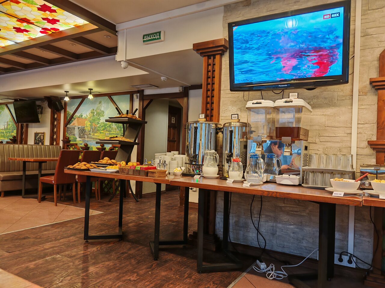 - Хороший завтрак (шведский стол, изобилие блюд)